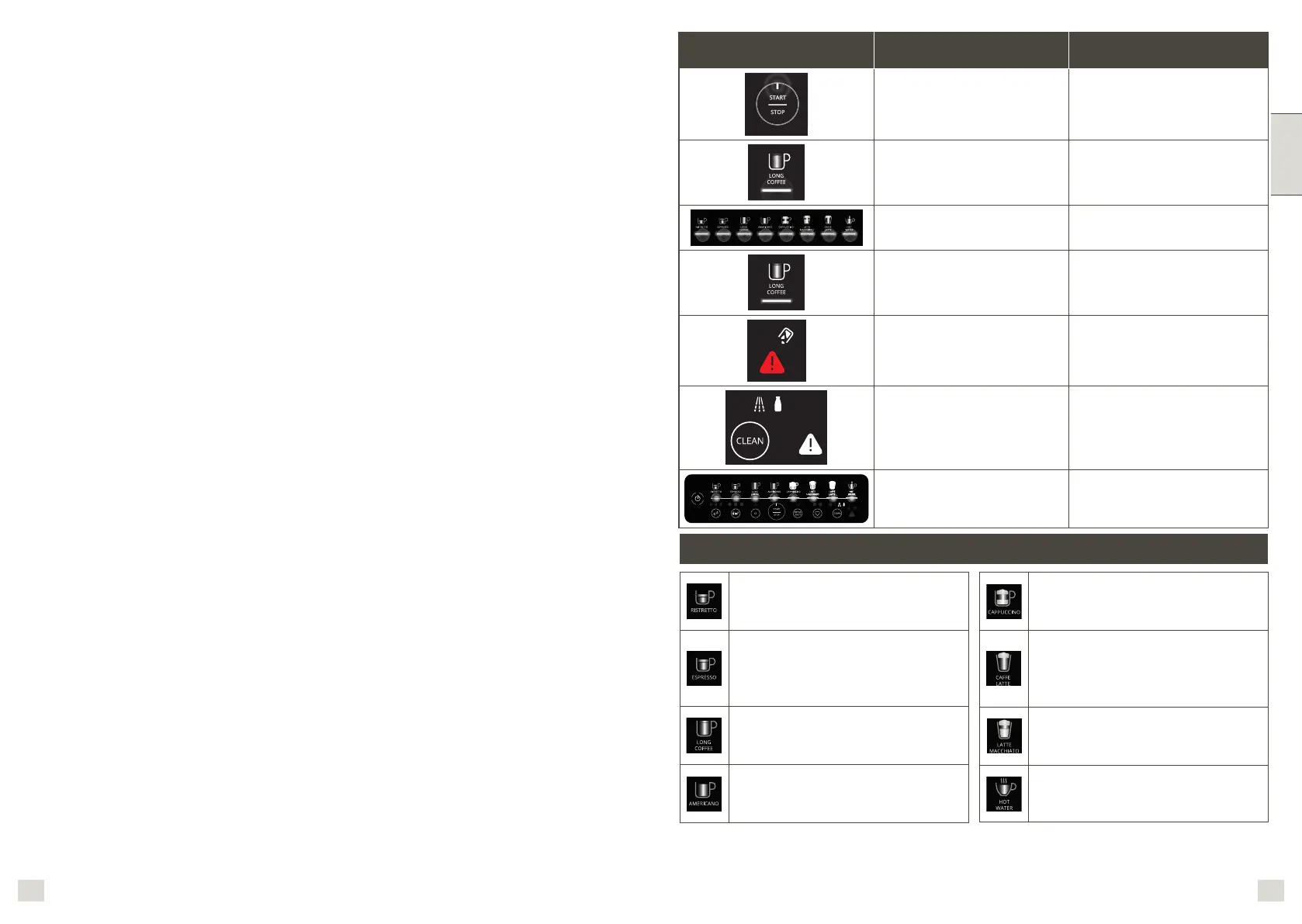 Alle drikkeikoner lyser etter