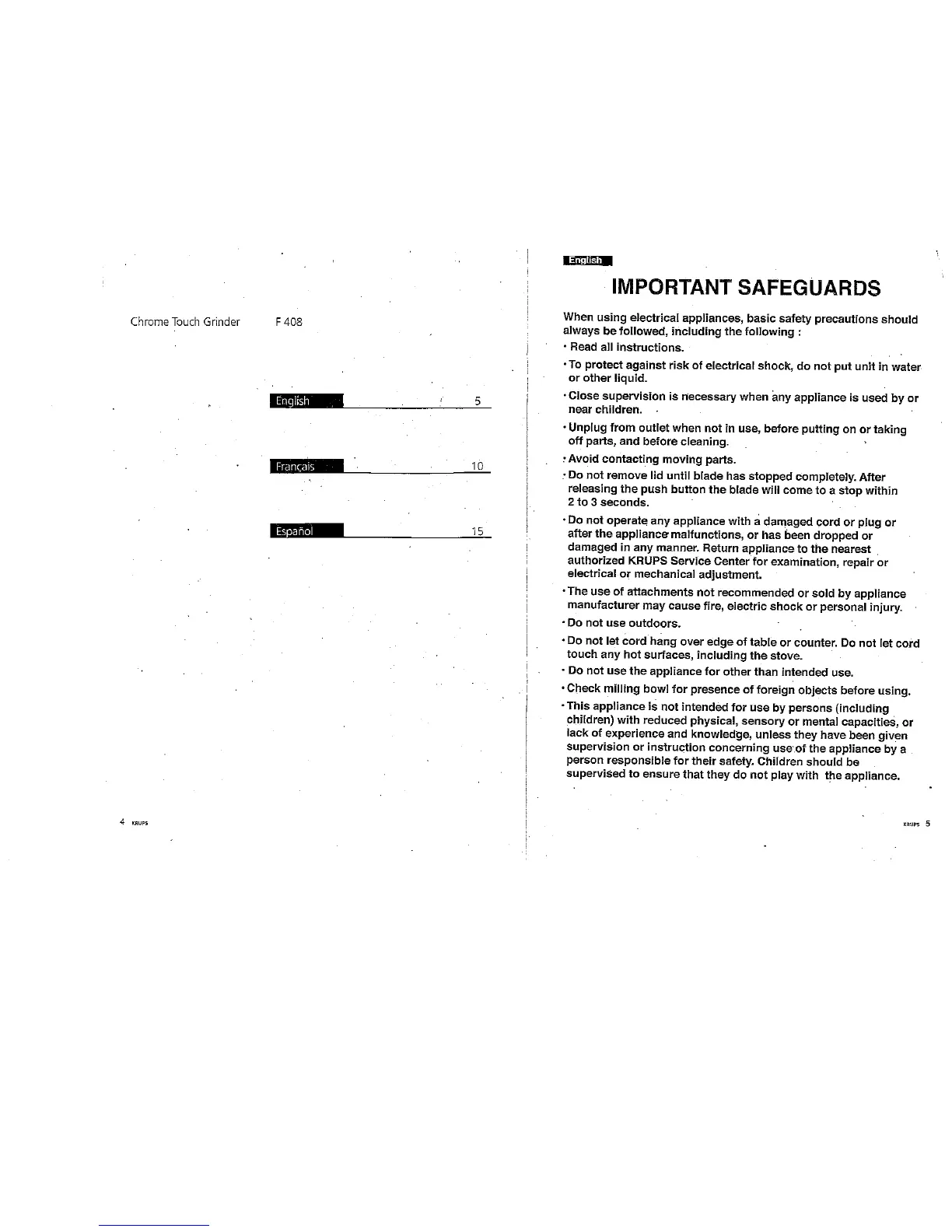 Krups GX 4100 - Important Safeguards