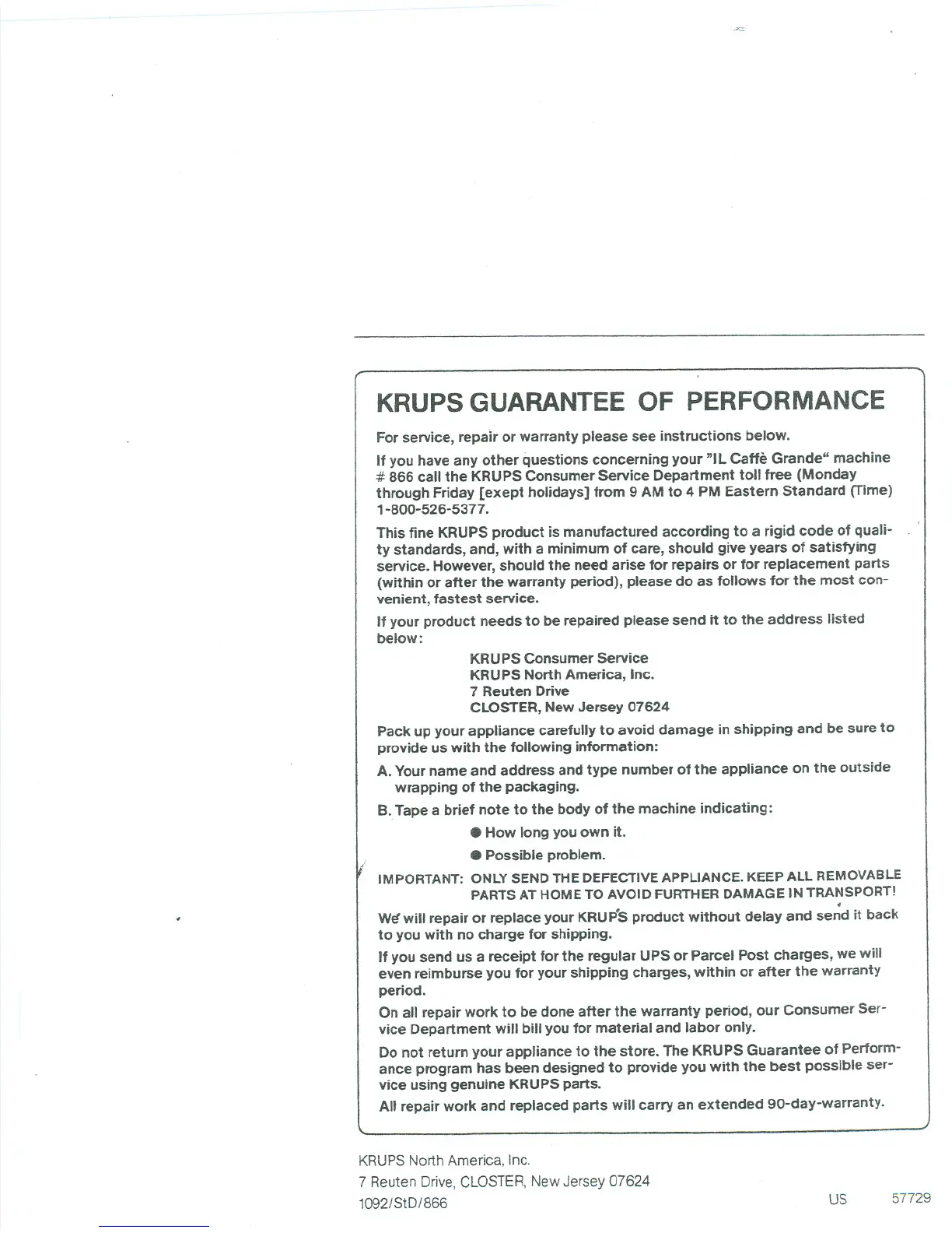 We'will repair or replace your KRUP'Sproduct without delay and se~d it back