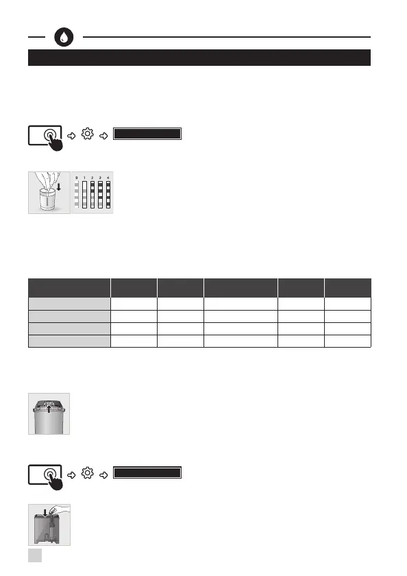 . În meniul„Duritatea apei”, apăsaţi numărul corespunzător între 0 și 4.