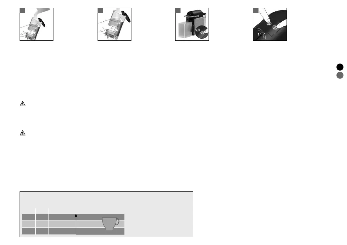 je potřeba provést odvápnění, aby váš kávovar fungoval optimálně. Toto závisí na tvrdosti vody. Dodatečné informace ohledně odvápnění získáte