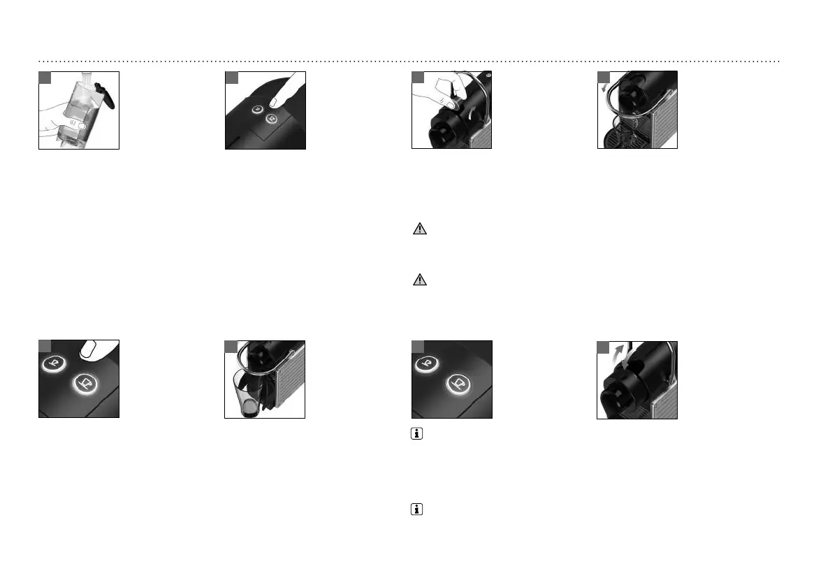Unieść dźwignię i włożyć kapsułę.Włączyć ekspres naciskając przycisk Espresso