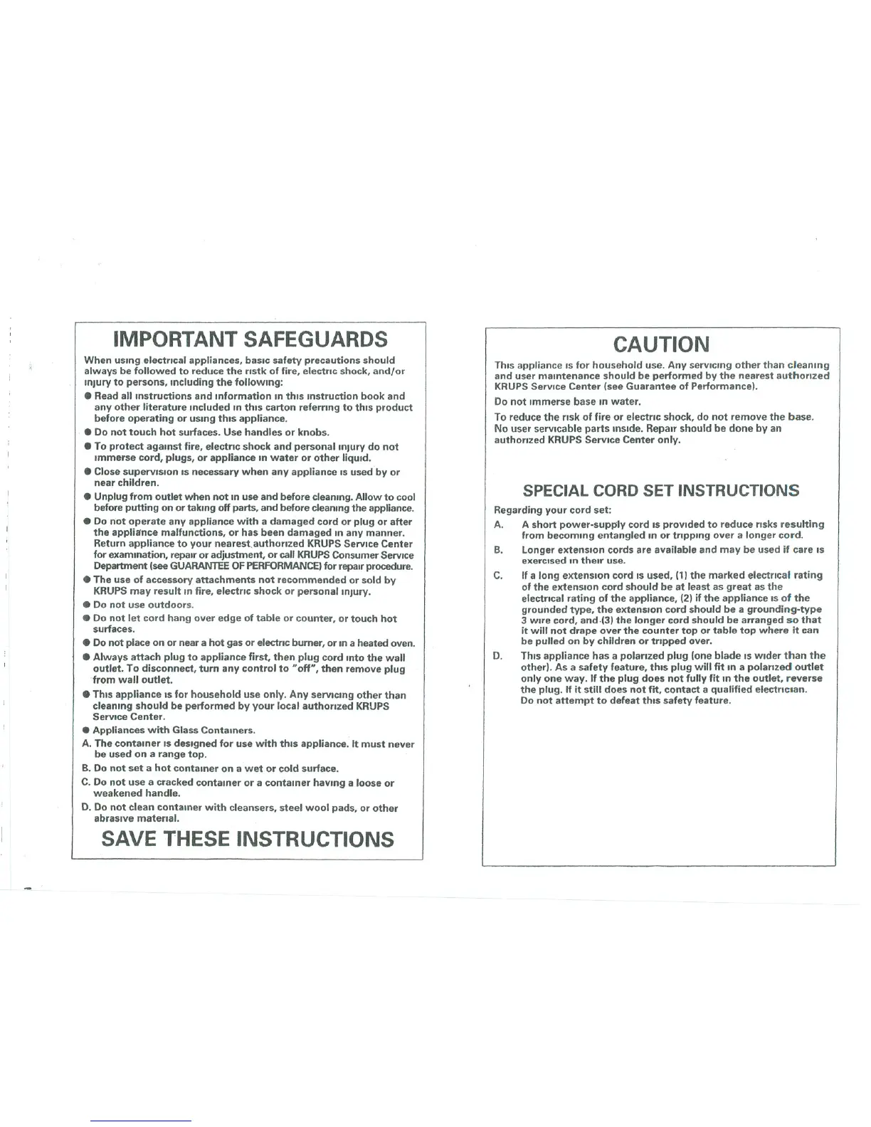 KRUPSmay result Infire,electric shock or personal Injury.