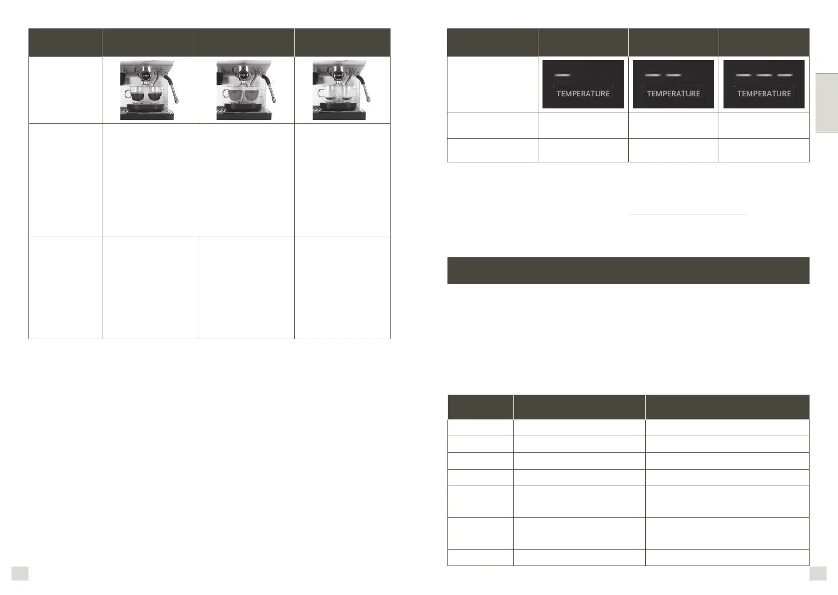 Megjegyzés: A kávébab-fajtákhoz és a pörkölési színekhez külön-külön hőmérséklet-beállítás