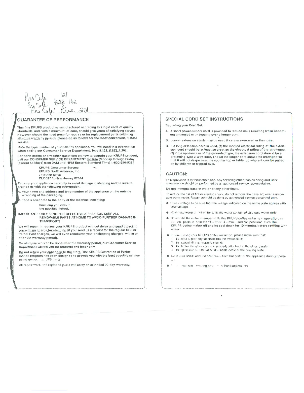 QQ.not retwn your~Ppli;]!l~_1otl1Q.!)tor.~,The KRUPSGuarantee of Perfor-