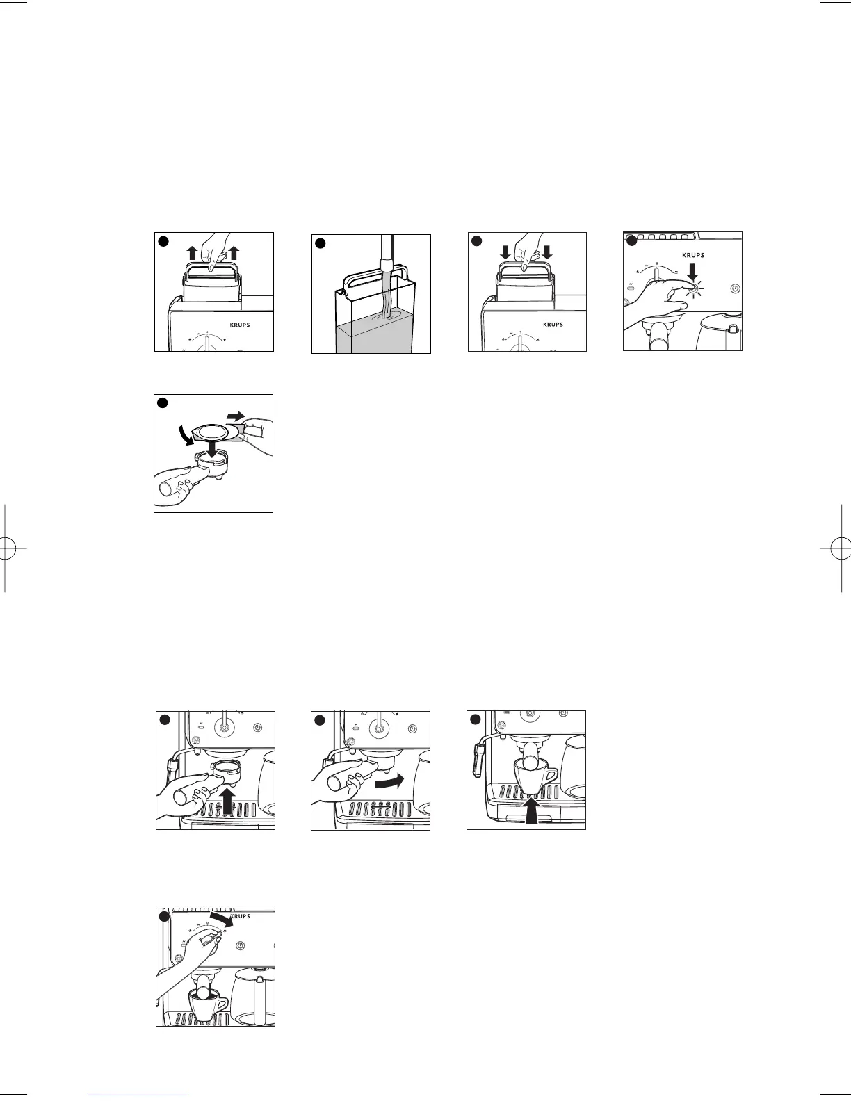 • Fill the water tank (1) (2) (3) and turn on the machine (4).