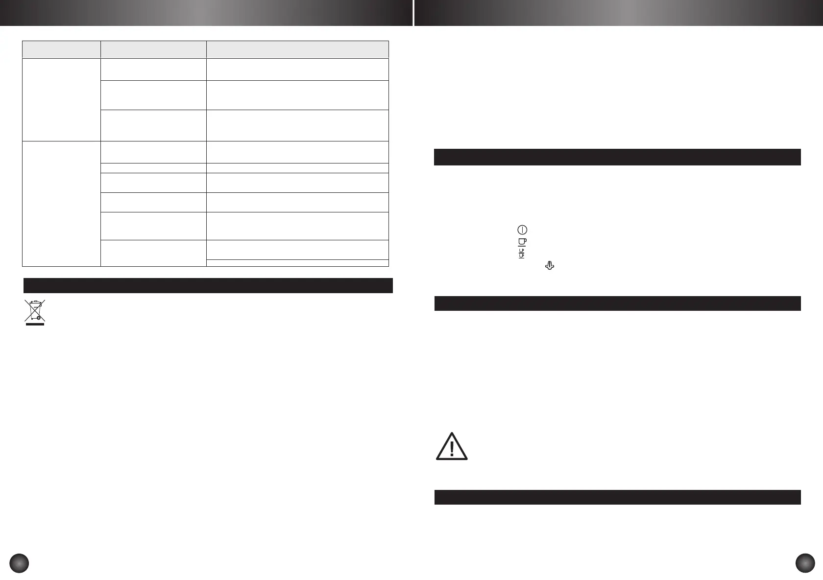 Problems Possible causes Solutions