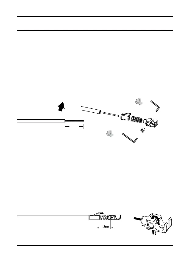 Recourse inner wire as shown. Tighten the locking cable end leaving 15mm