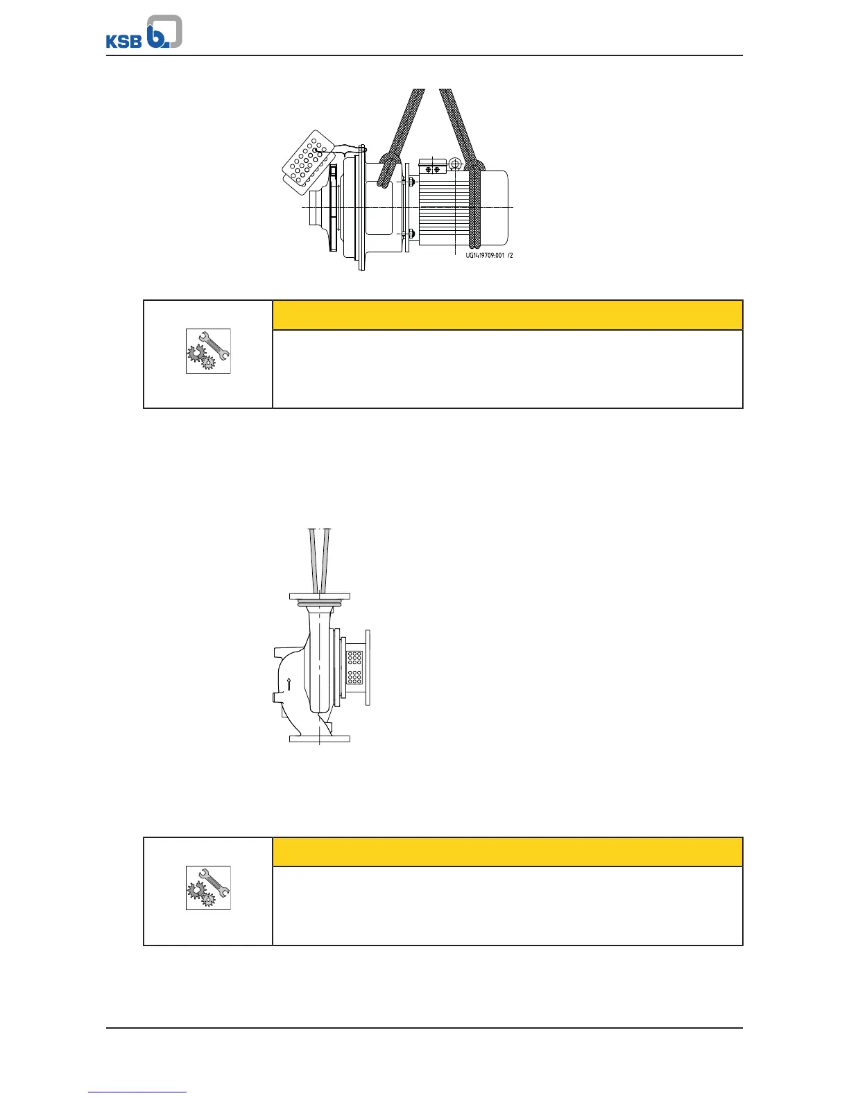 To transport the pump / pump set suspend it from the lifting tackle as shown.