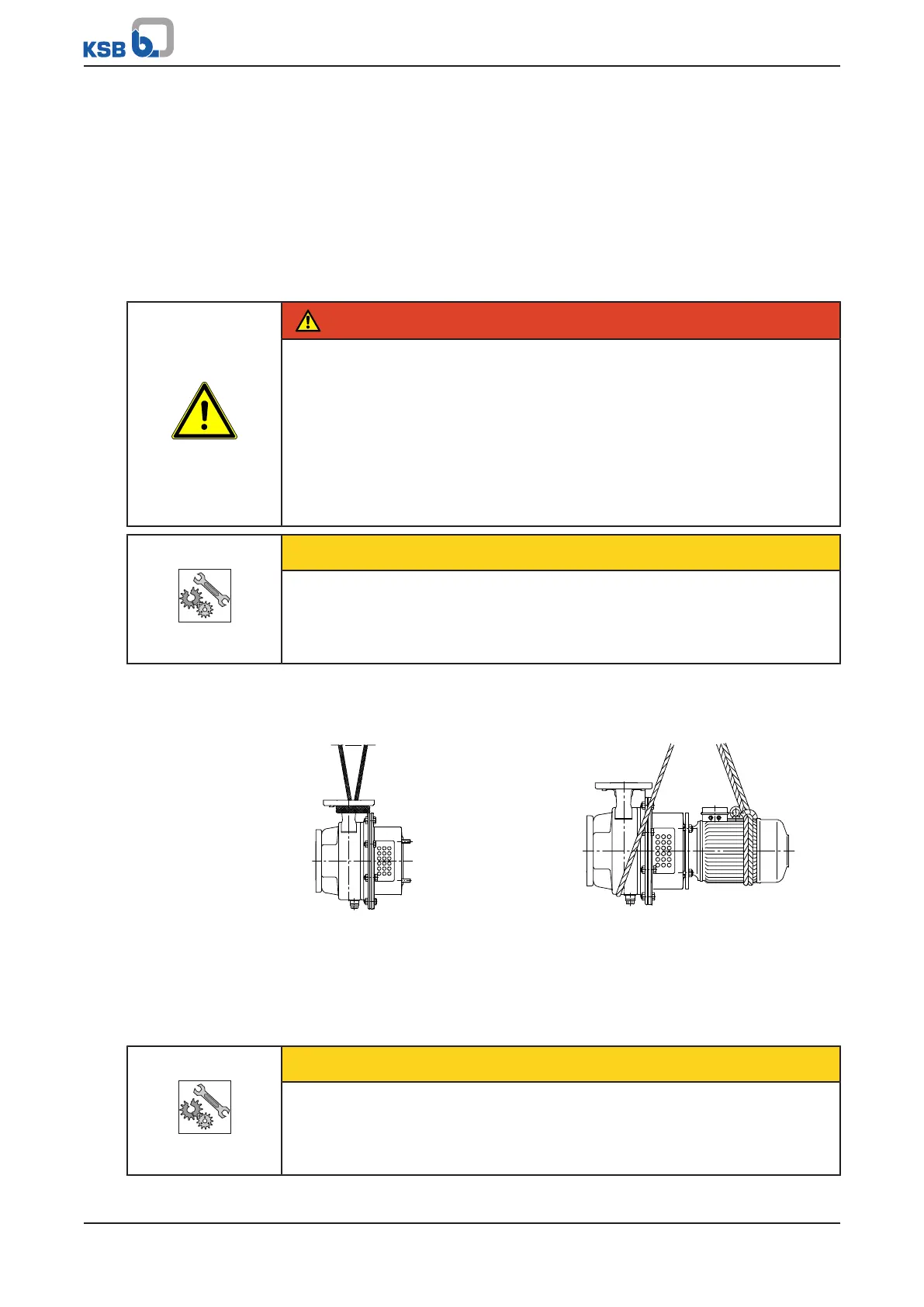 To transport the pump/pump set suspend it from the lifting tackle as shown.