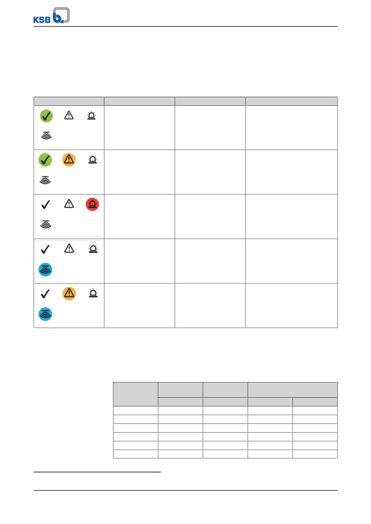 Table9: Overview of light signals and open collector signals