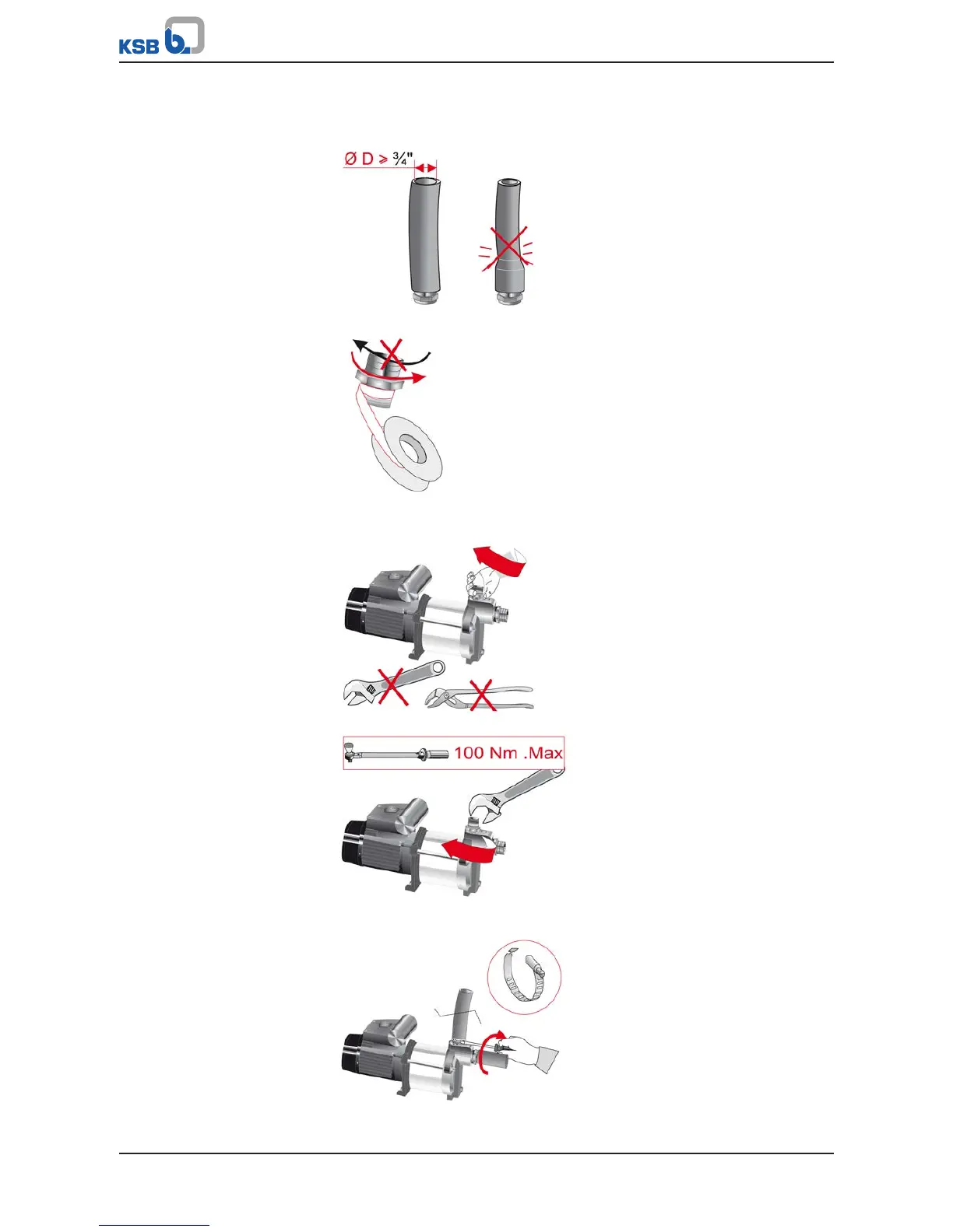 (Screw in metal connection fittings with a wrench (tightening torque: 100 Nm)).