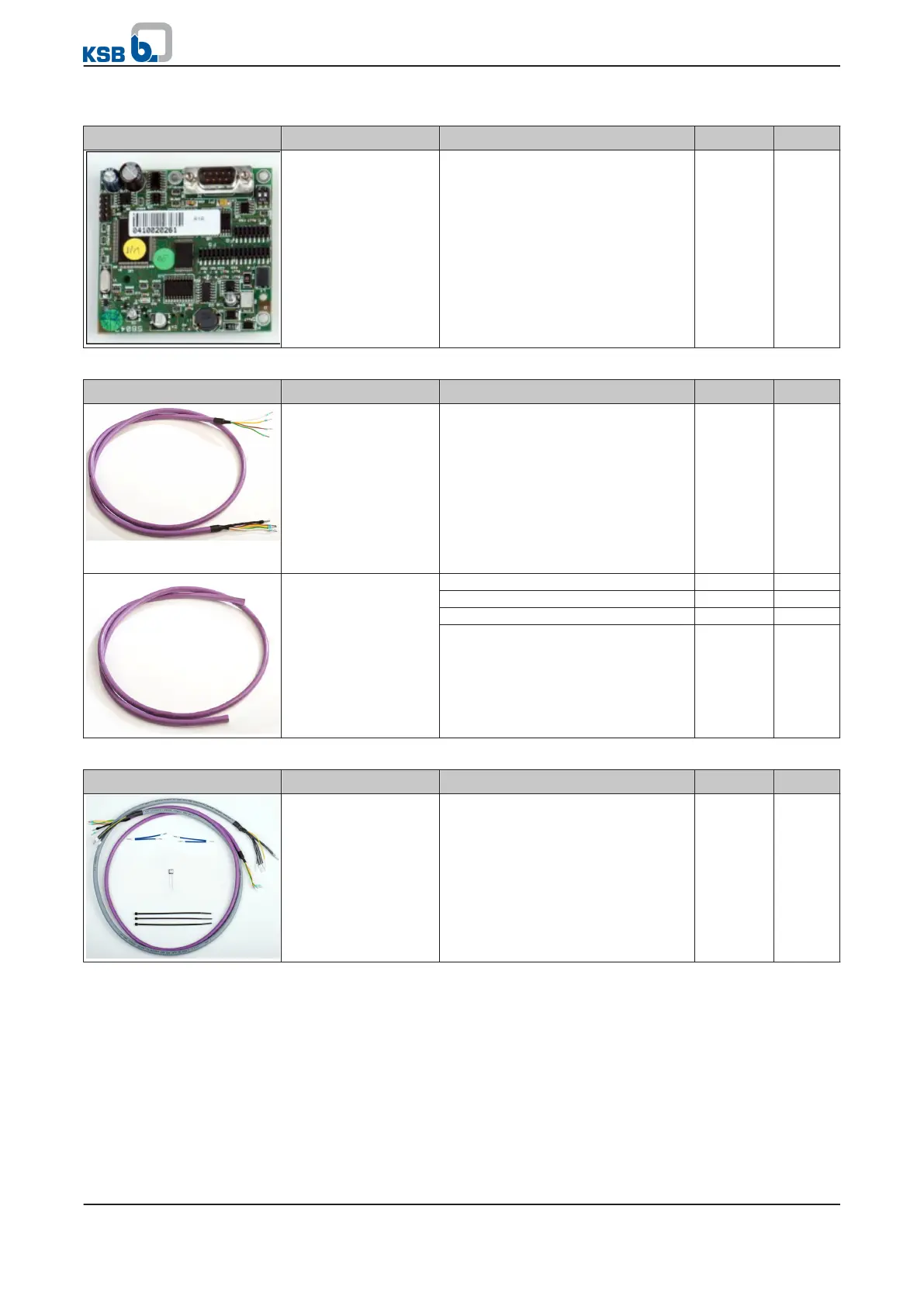 Table 127: Bus cable accessories