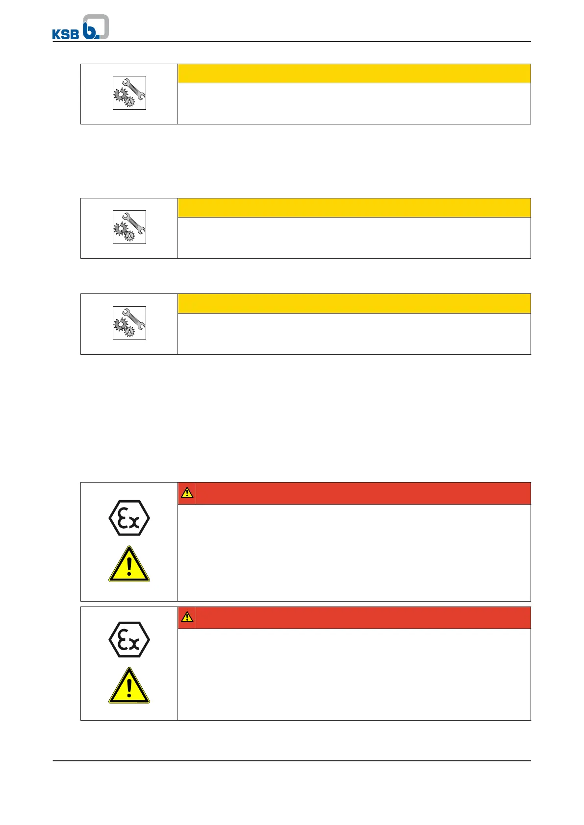 ▷ Prior to pump start-up, heat up the pump as described in the manual.