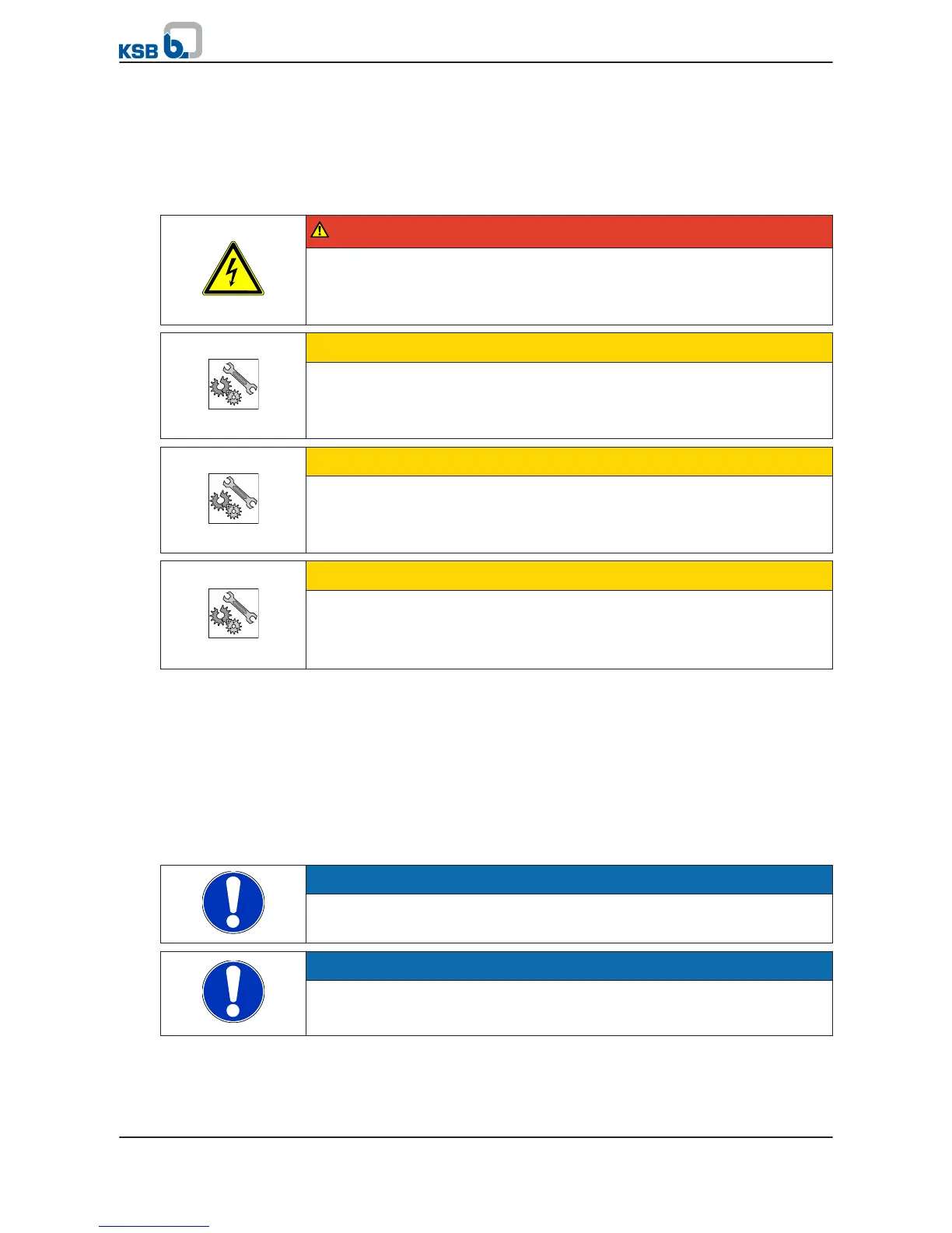 ▷ Only start up pump sets when the motor is filled and the unit is fully submerged