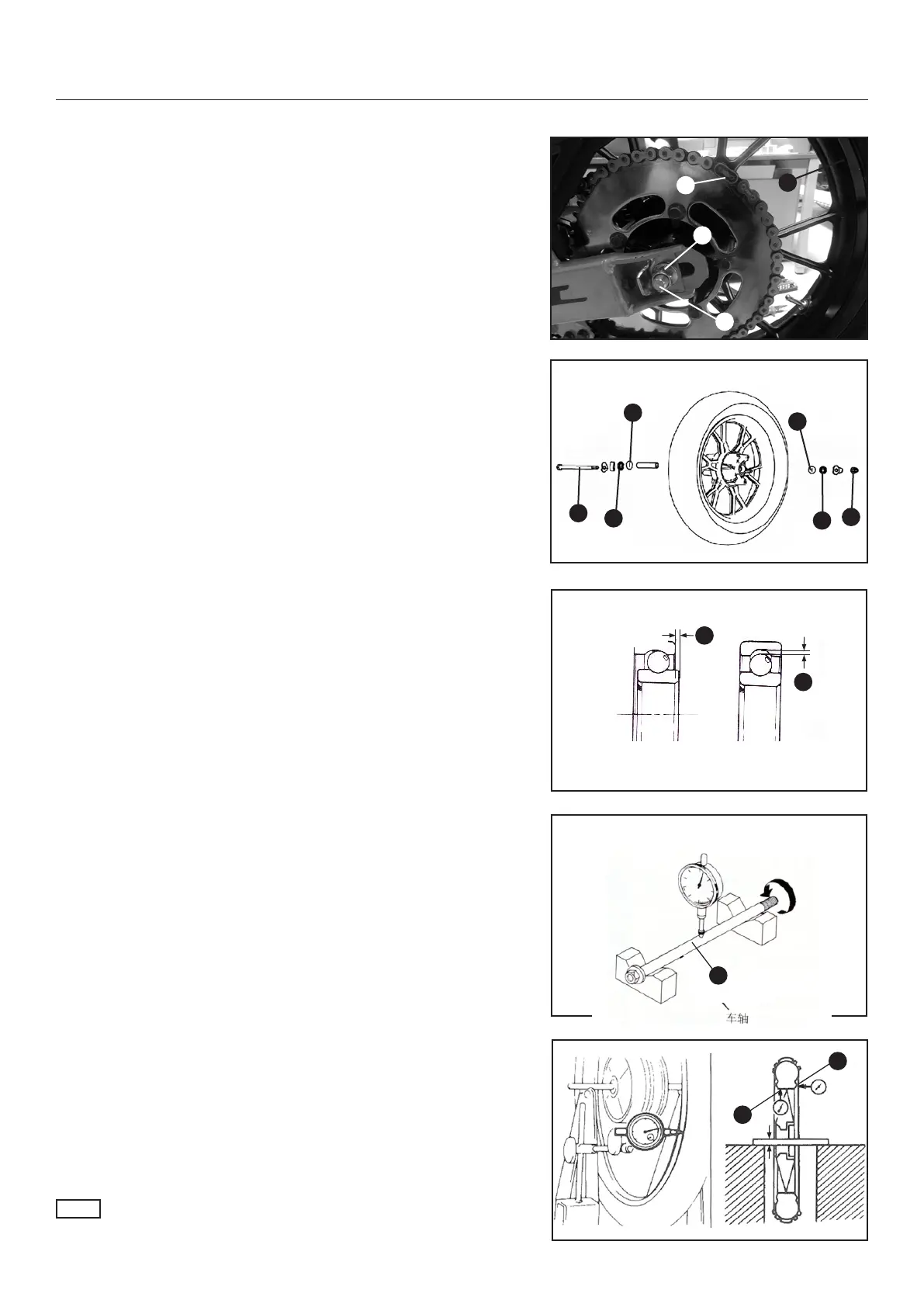 1. Put the wheel axle on a V-shape seat and use dial indicator