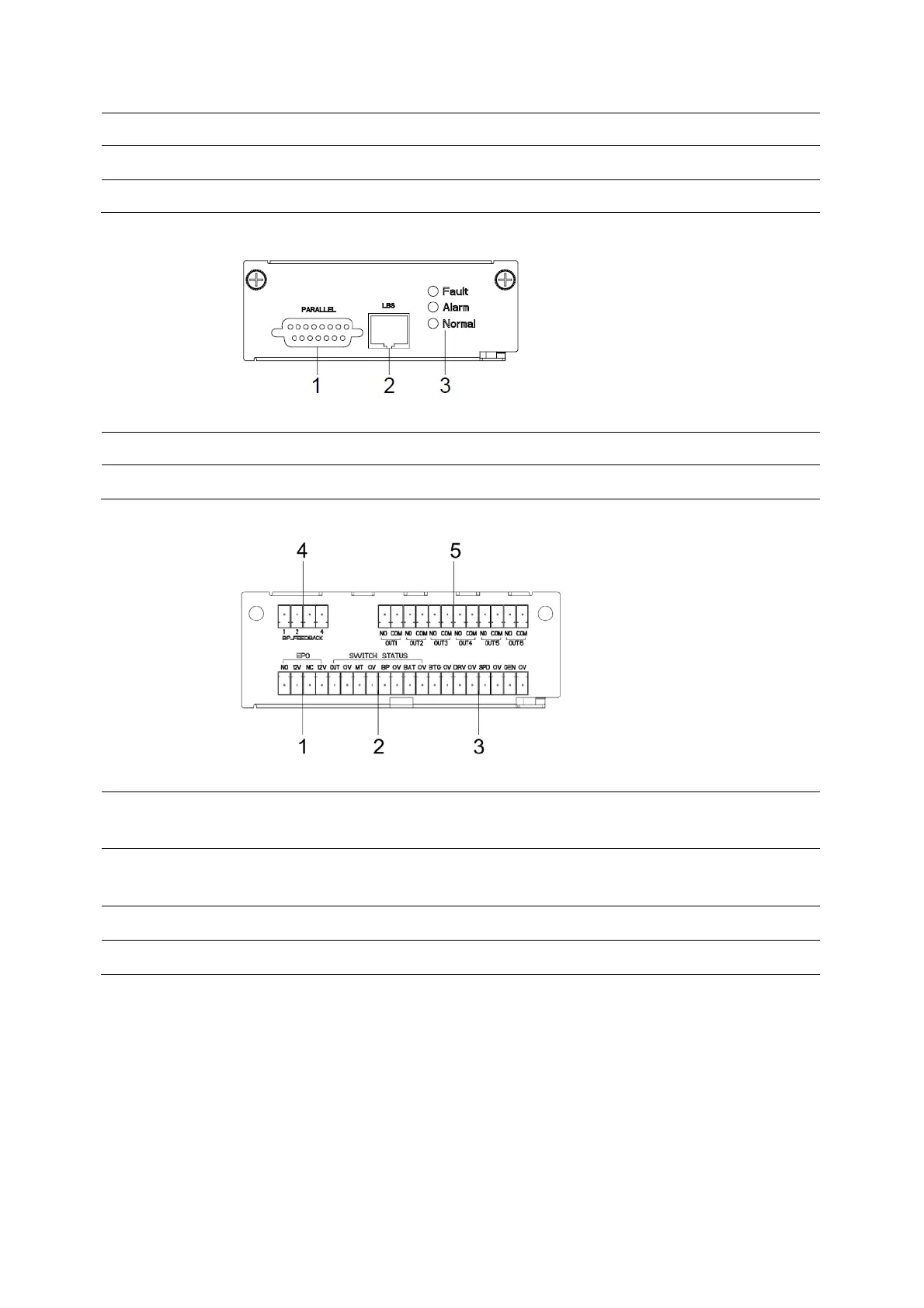 maintenance breaker auxiliary contact singnal port; BP-0V : bypass breaker auxiliary contact
