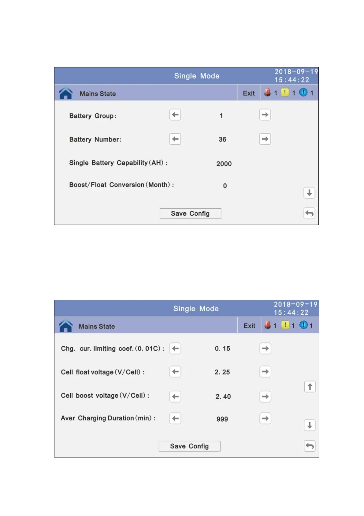 Cell float voltage: The float voltage value can be 2.23~2.30 V/cell, and is 2.25 V/cell by