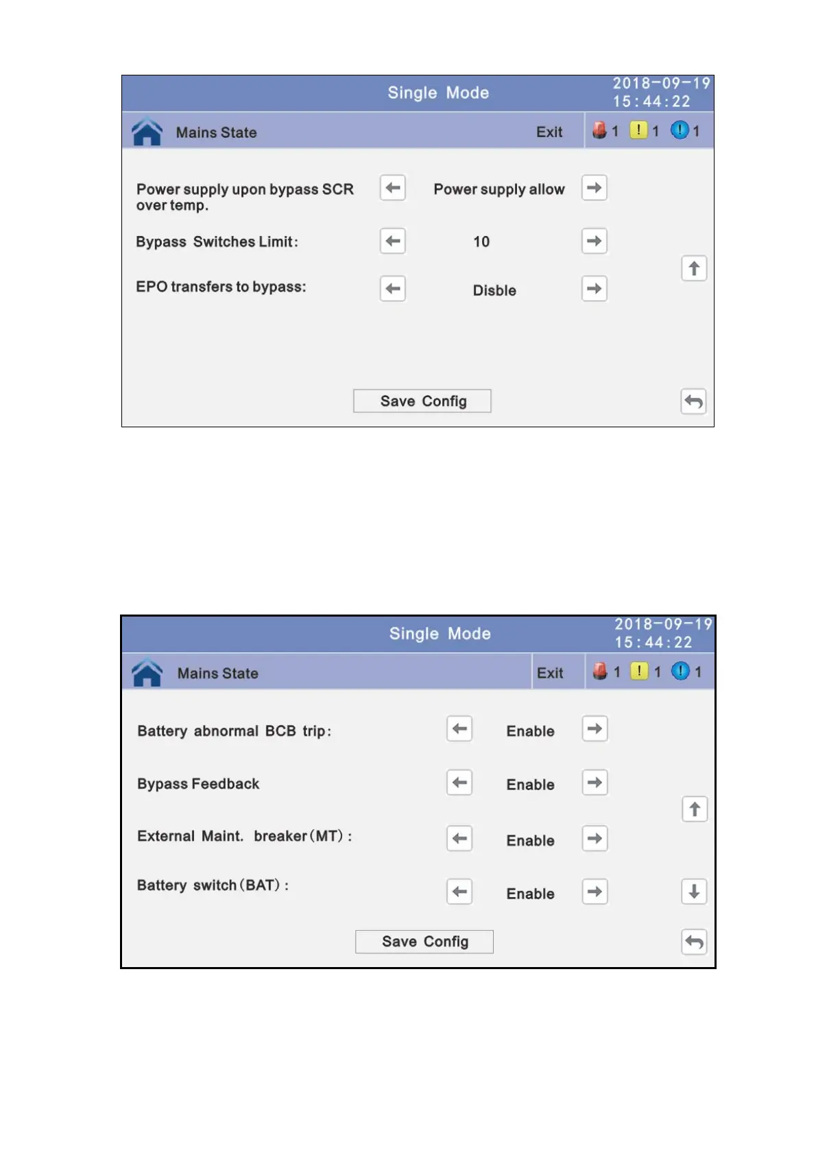 Battery abnormal BCB trip: Enable or disable BCB trip single output. The default value