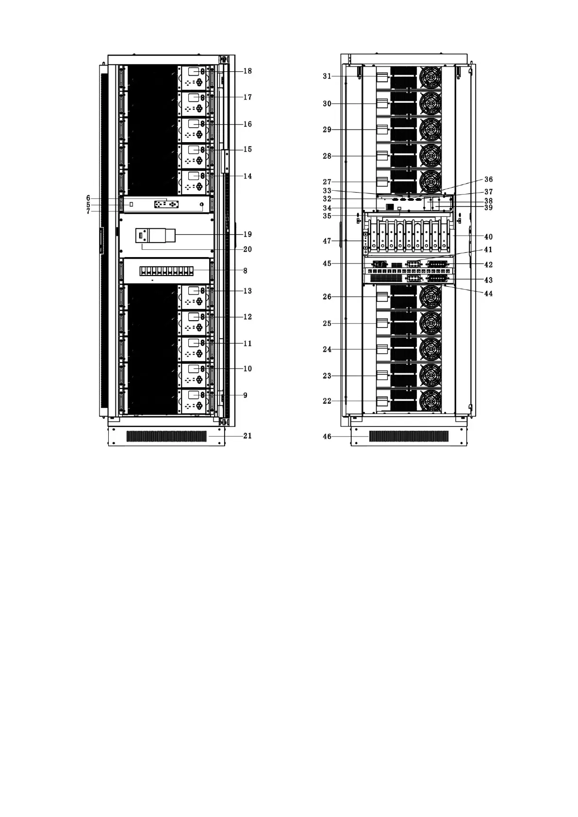 cover (21)bottom cover for front door (22)Main Switch for UPS Module 1 (23)Main Switch
