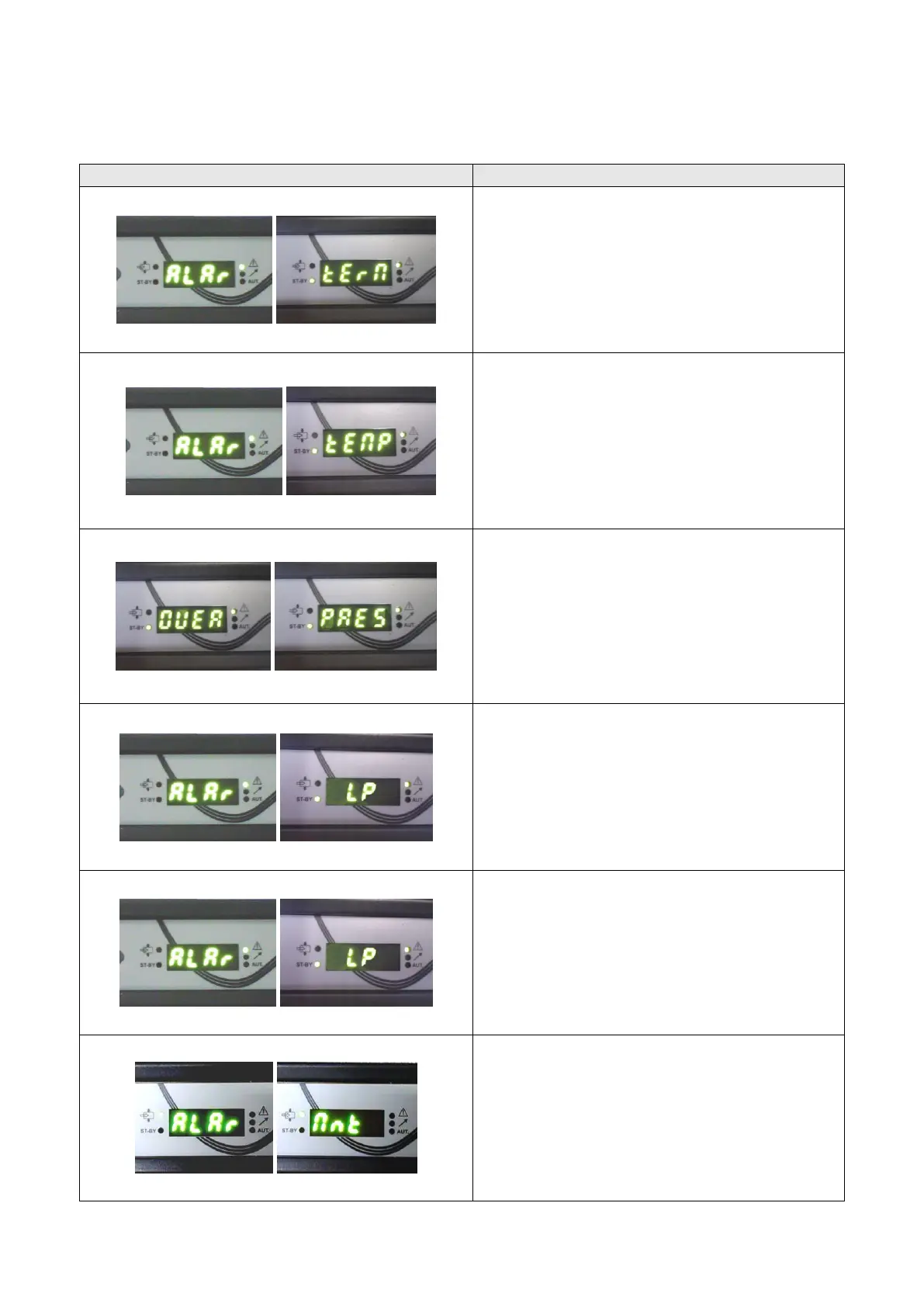 KTC COMPACK 2 ECO - Compressor Alarm List and Descriptions