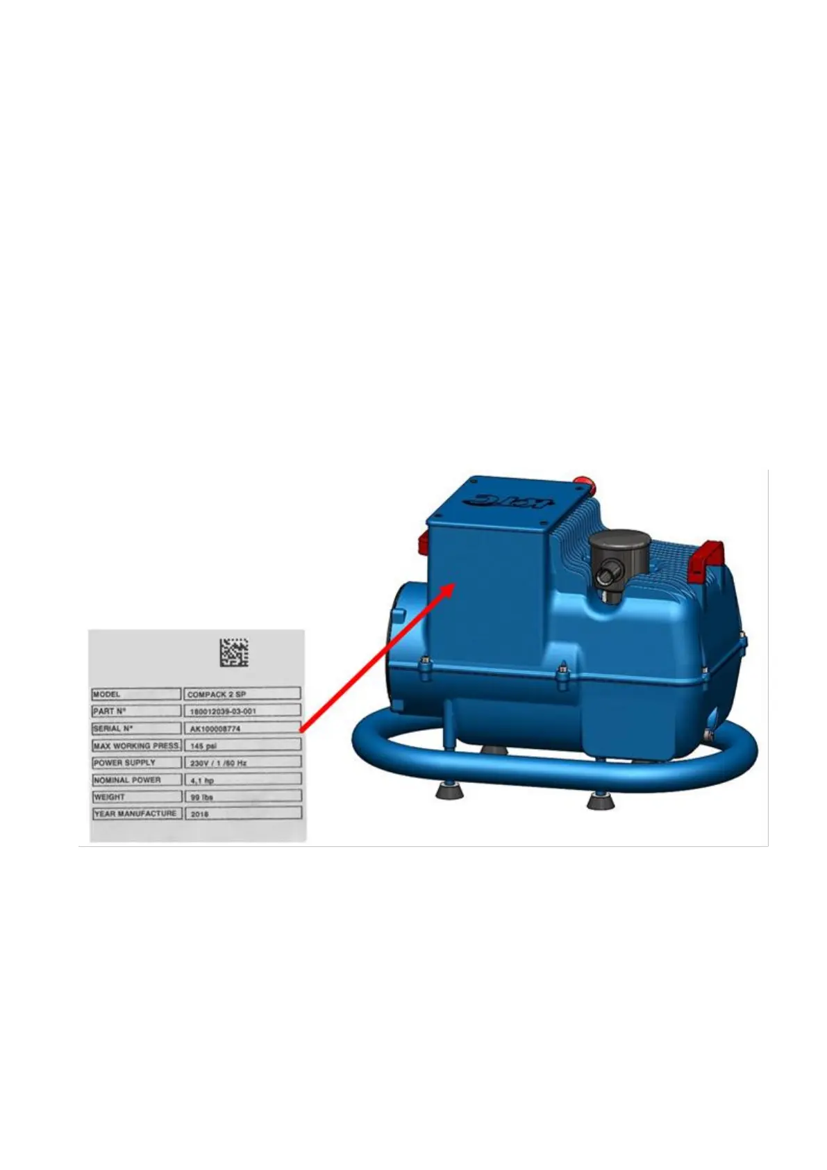 The CE marking certifies that the compressor complies with the health and safety requirements