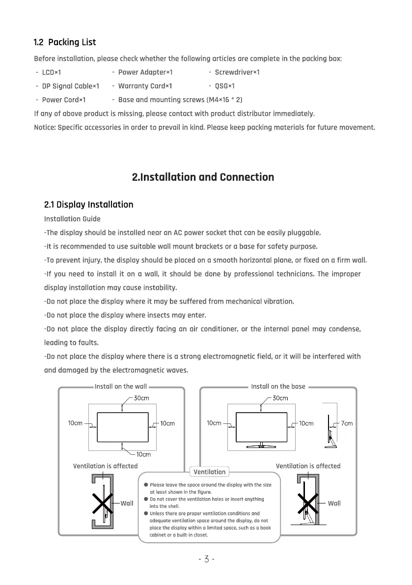 -TO prevent injury, the display should be placed on a smooth horizontal plane, or fixed on a firm wall.
