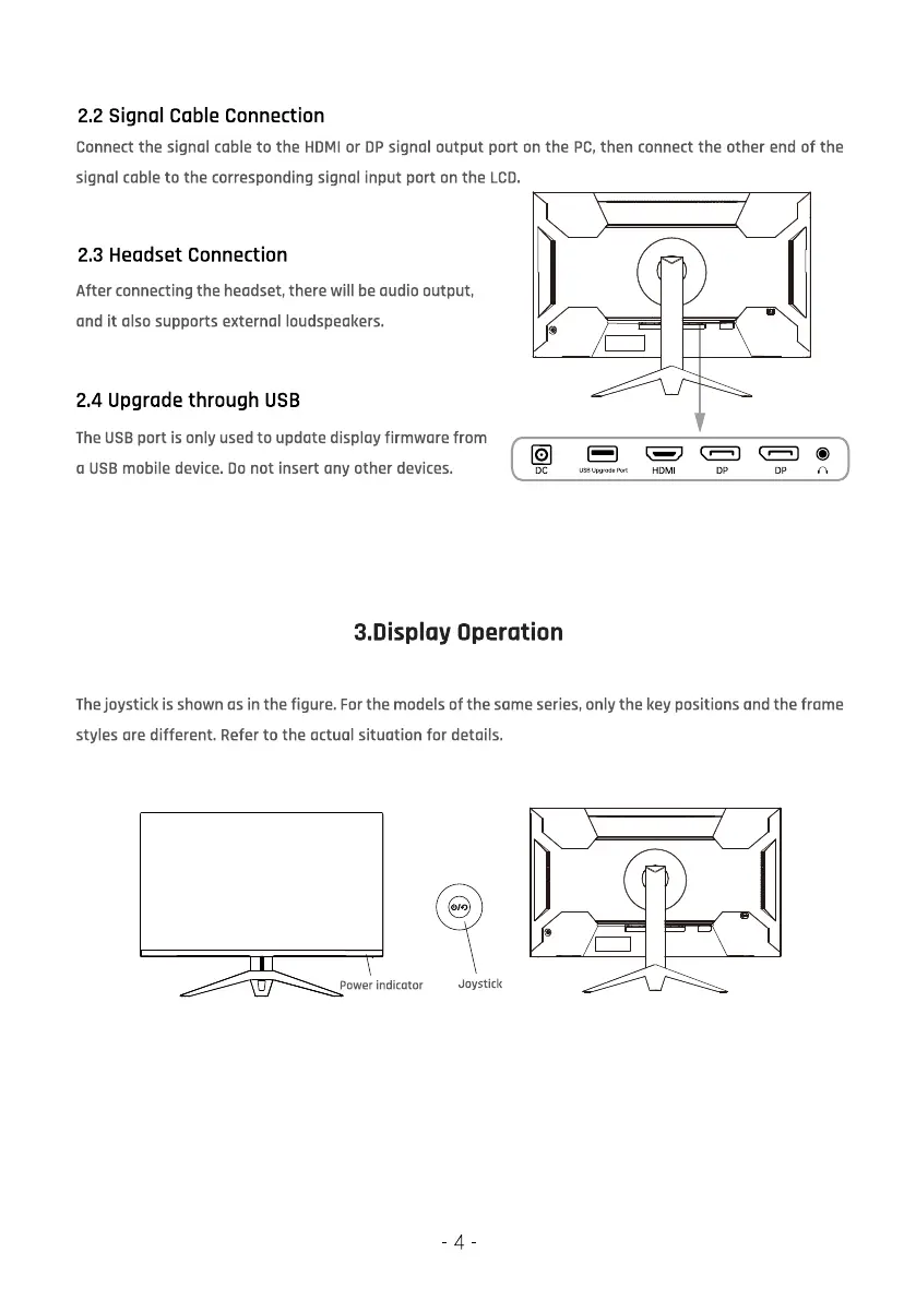 Connect the signal cable to the HDMI or DP signal output port on the PC,then connect the other end of the