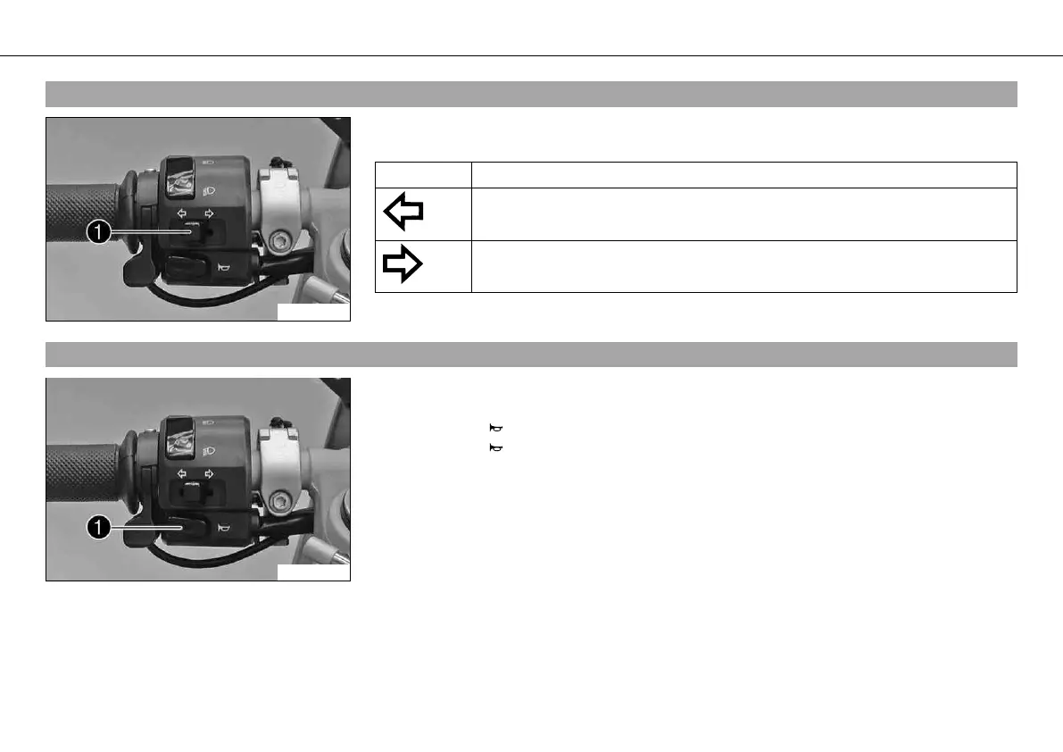Flasher light, left, on – Flasher switch pressed to the right. The flasher