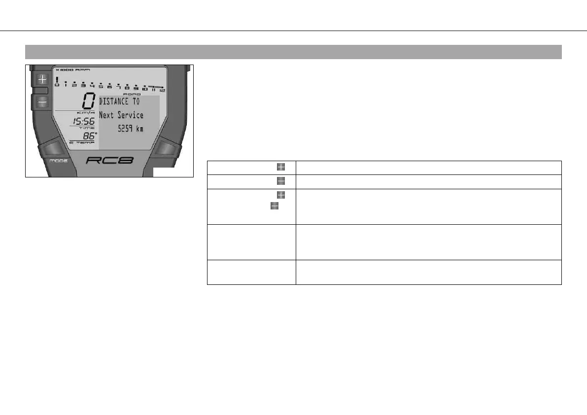 DISTANCE TO Next Service shows the distance before the next service is necessary.