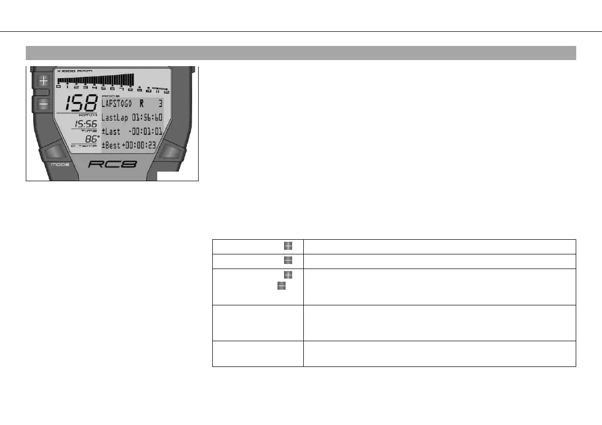 – Press the MODE button briefly and repeatedly until LAPSTOGO appears at the top left of