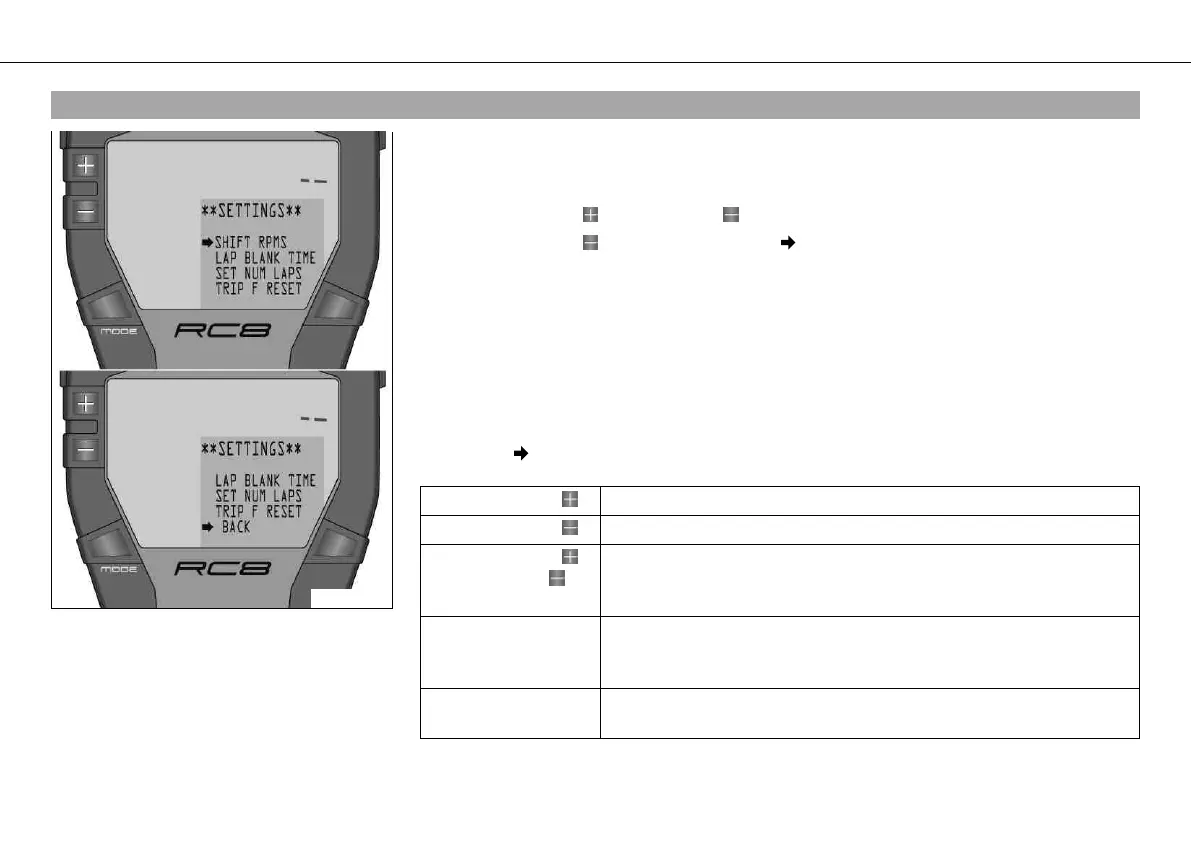 On the SHIFT RPMS menu, you can activate the shift warning light.