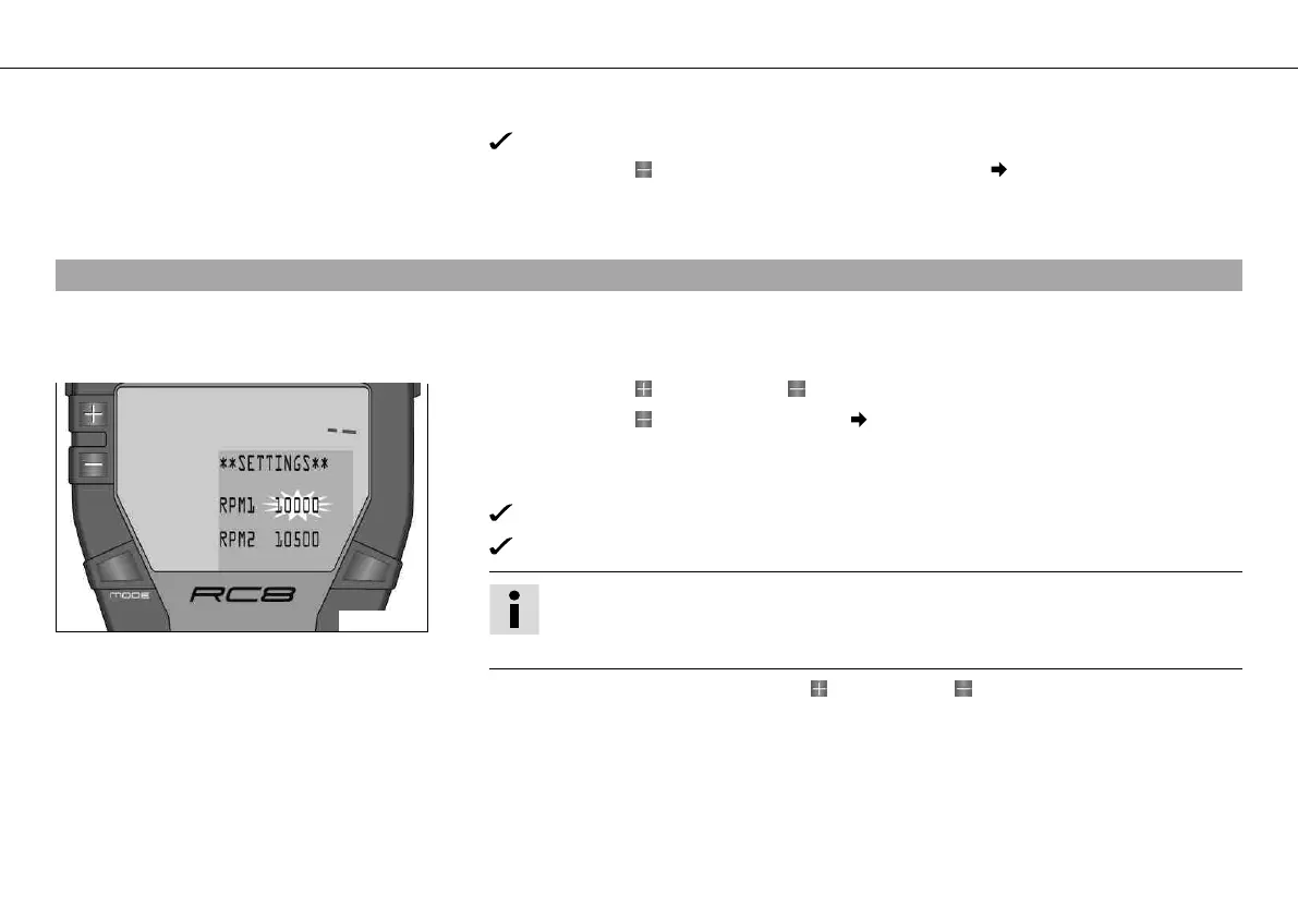 – Set the engine speed with the button or the button .