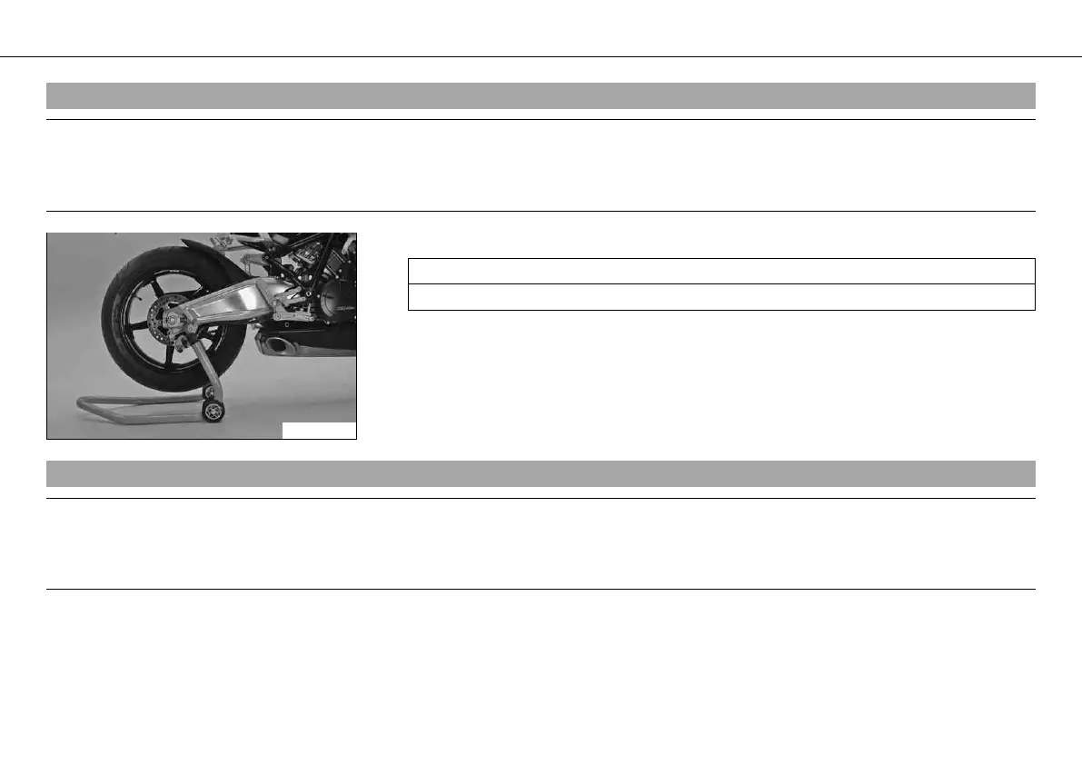 – Remove the work stand from the rear and lean the vehicle on the sidestand.