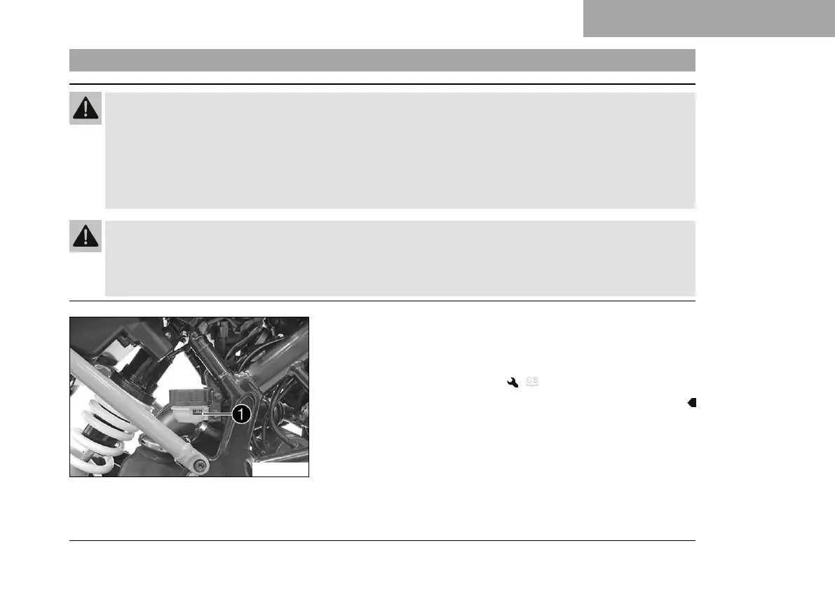 – Make sure that brake fluid for the front and rear brake is changed in accordance with the service