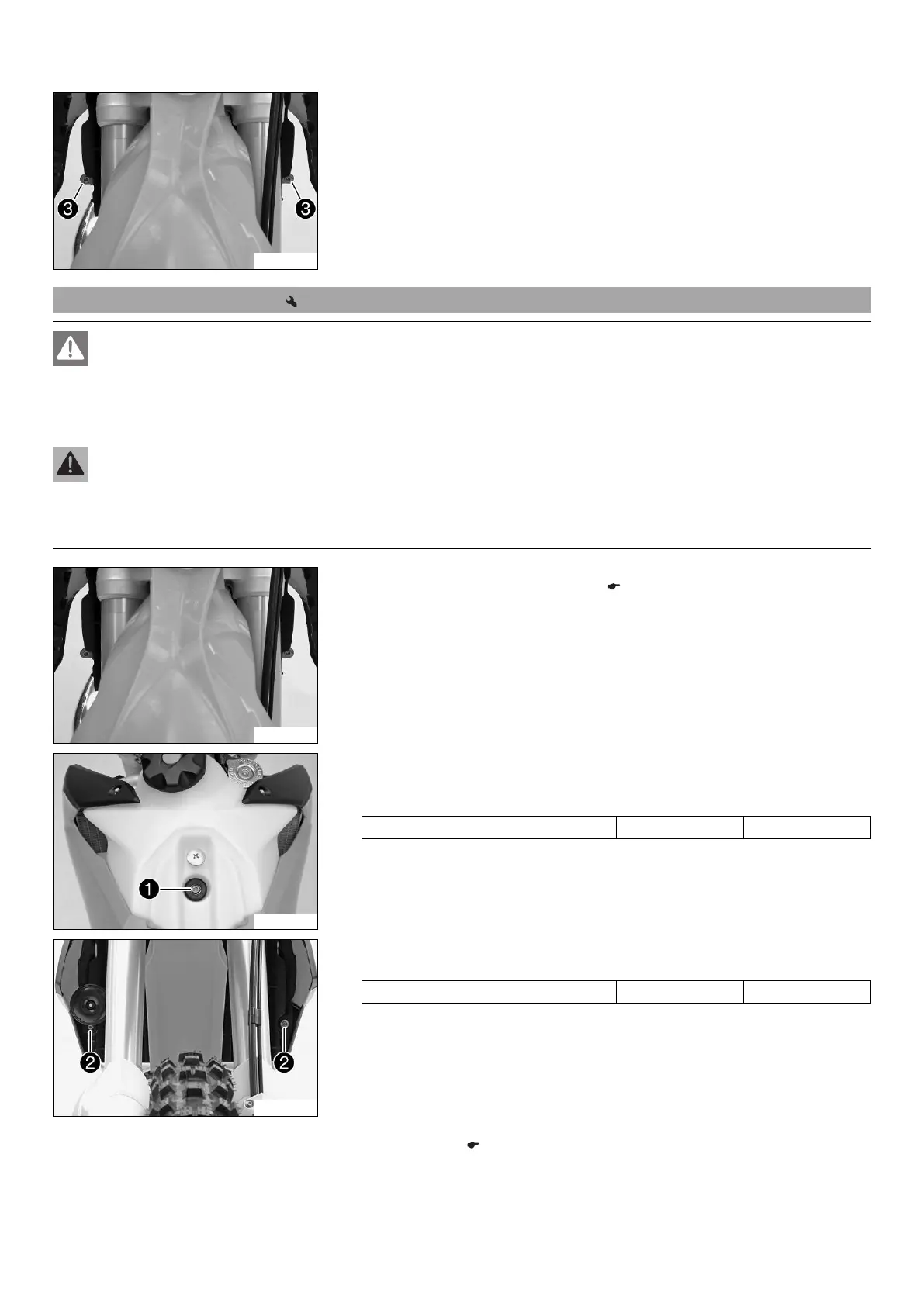 – Position the fuel tank and fit the two spoilers to the sides of the radiator bracket.