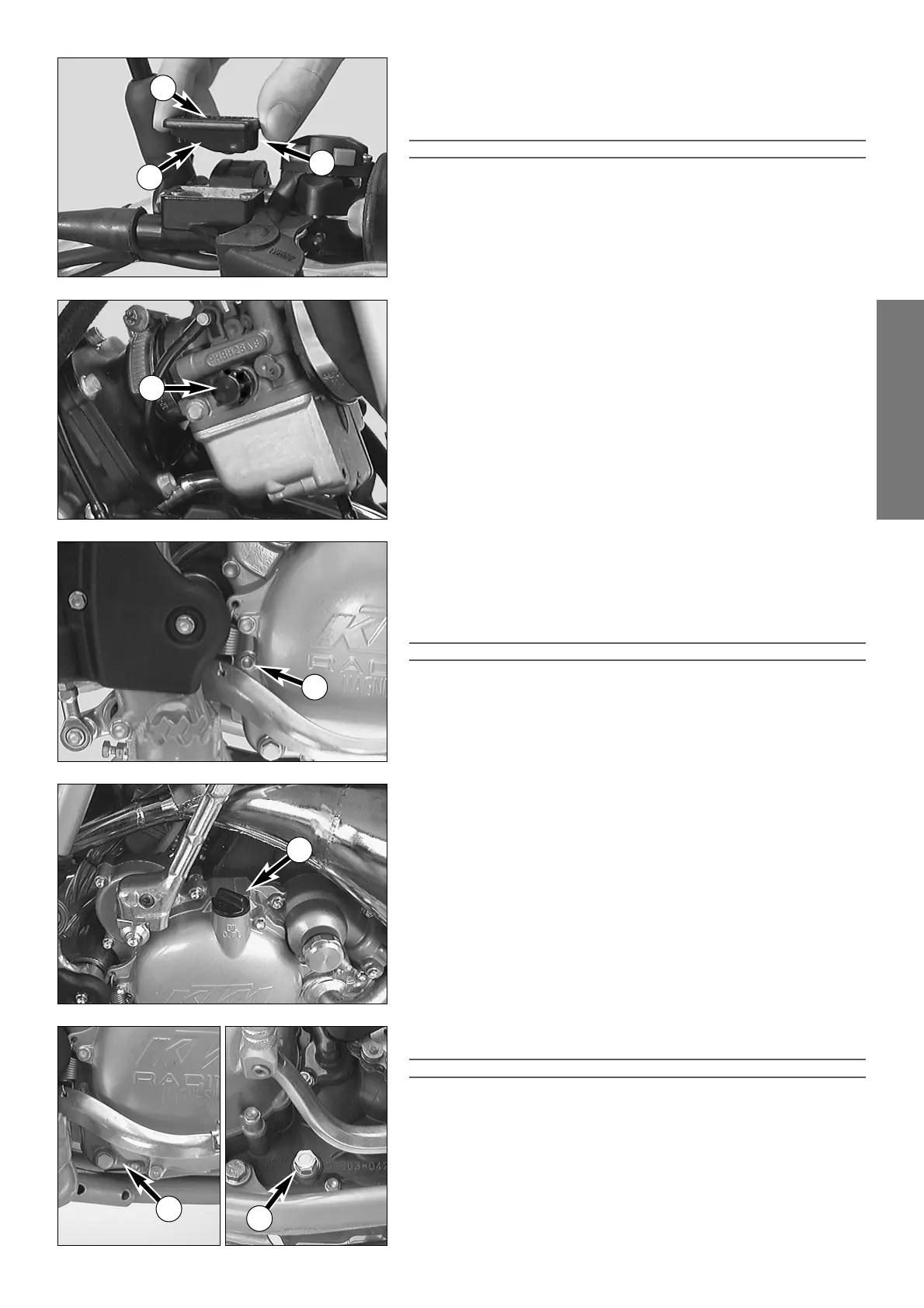 clutch cover is to be removed. Oil should just barely escape from the ins-