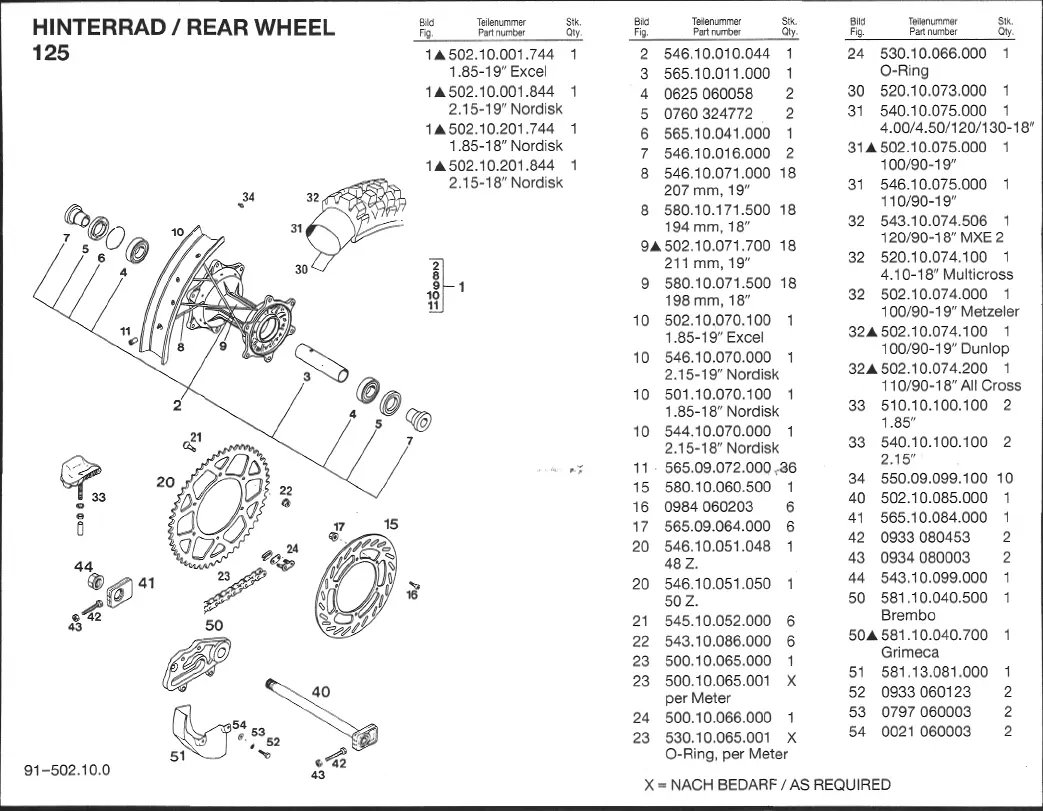KTM 125 MX - Rear Wheel Assembly; Rear Wheel Parts