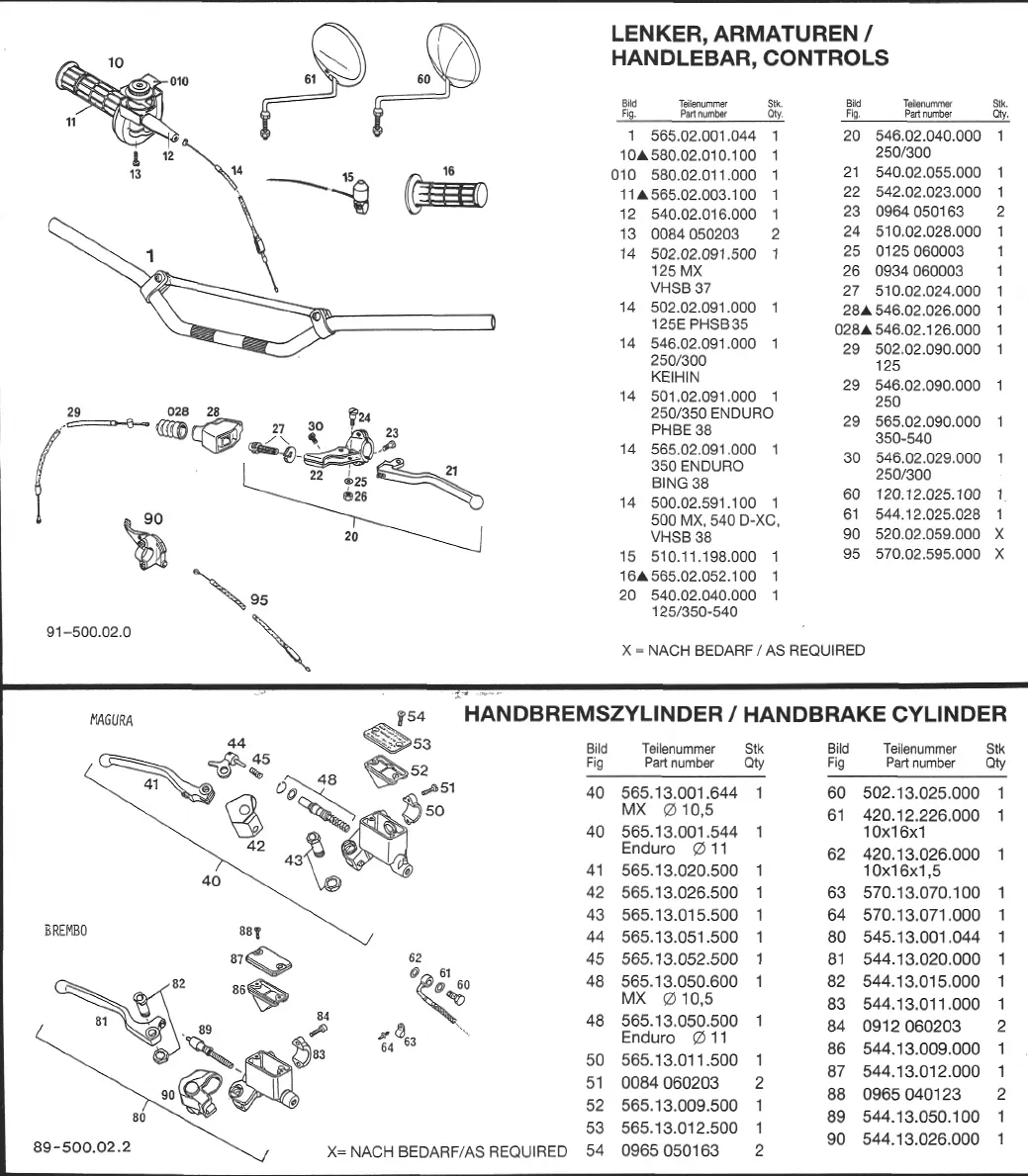 KTM 125 MX - Handlebar and Controls; Handlebar and Controls Parts; Handbrake Cylinder; Handbrake Cylinder Parts