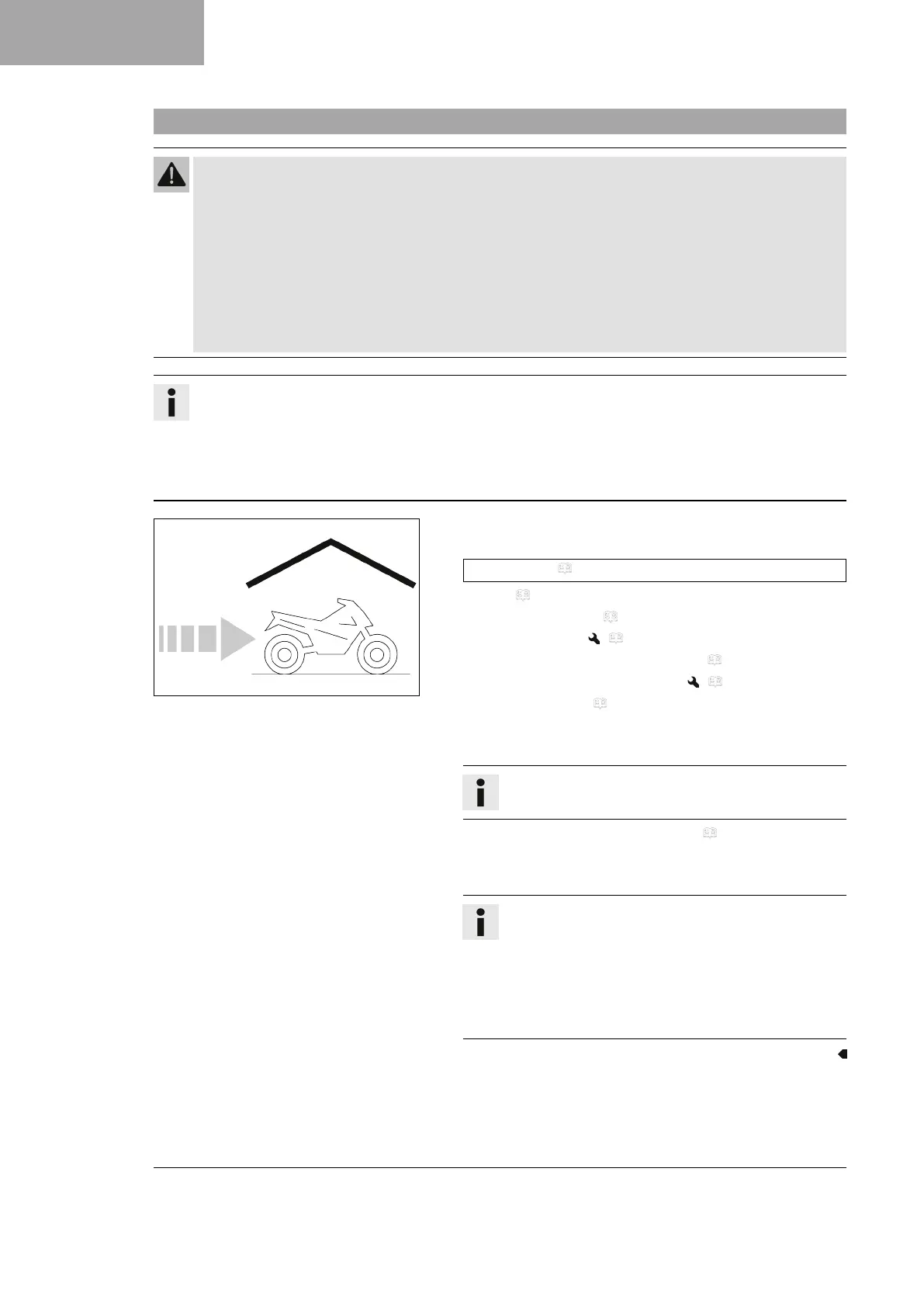 If you plan to garage the motorcycle for a longer period, perform the following steps or have them per-