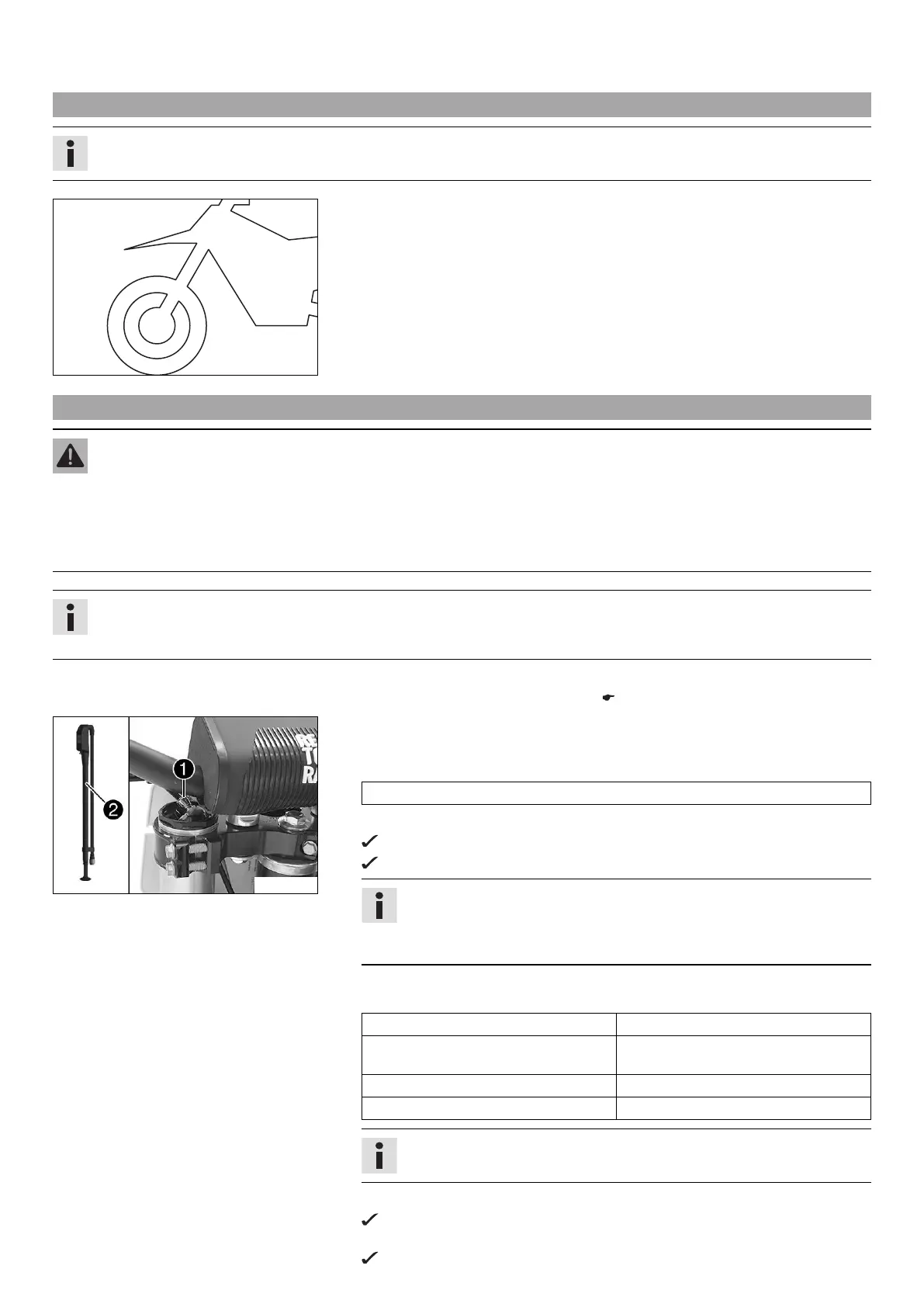 – Raise the motorcycle with a lift stand. ( p. 44)