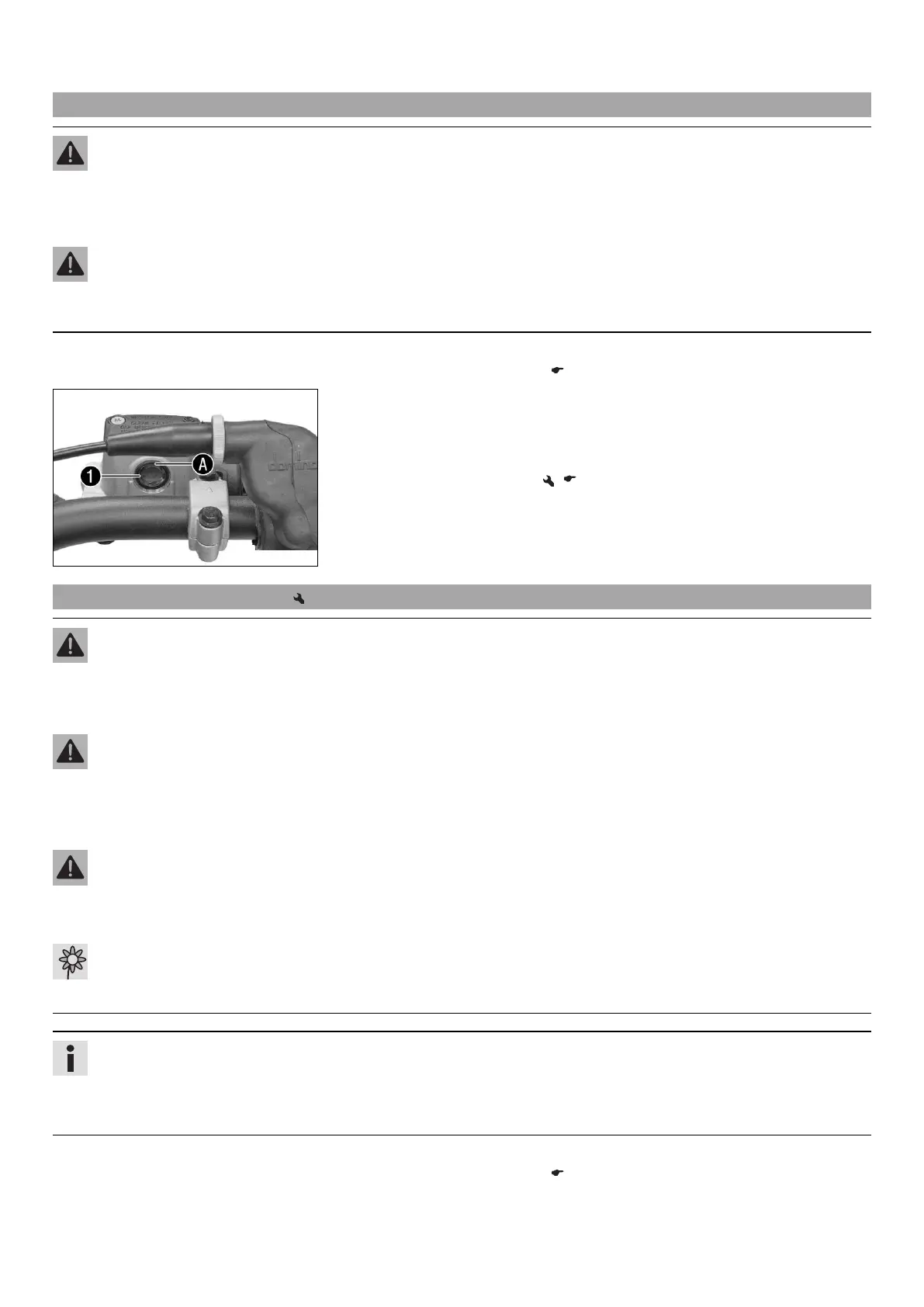 – Move the brake fluid reservoir mounted on the handlebar to a horizontal position.