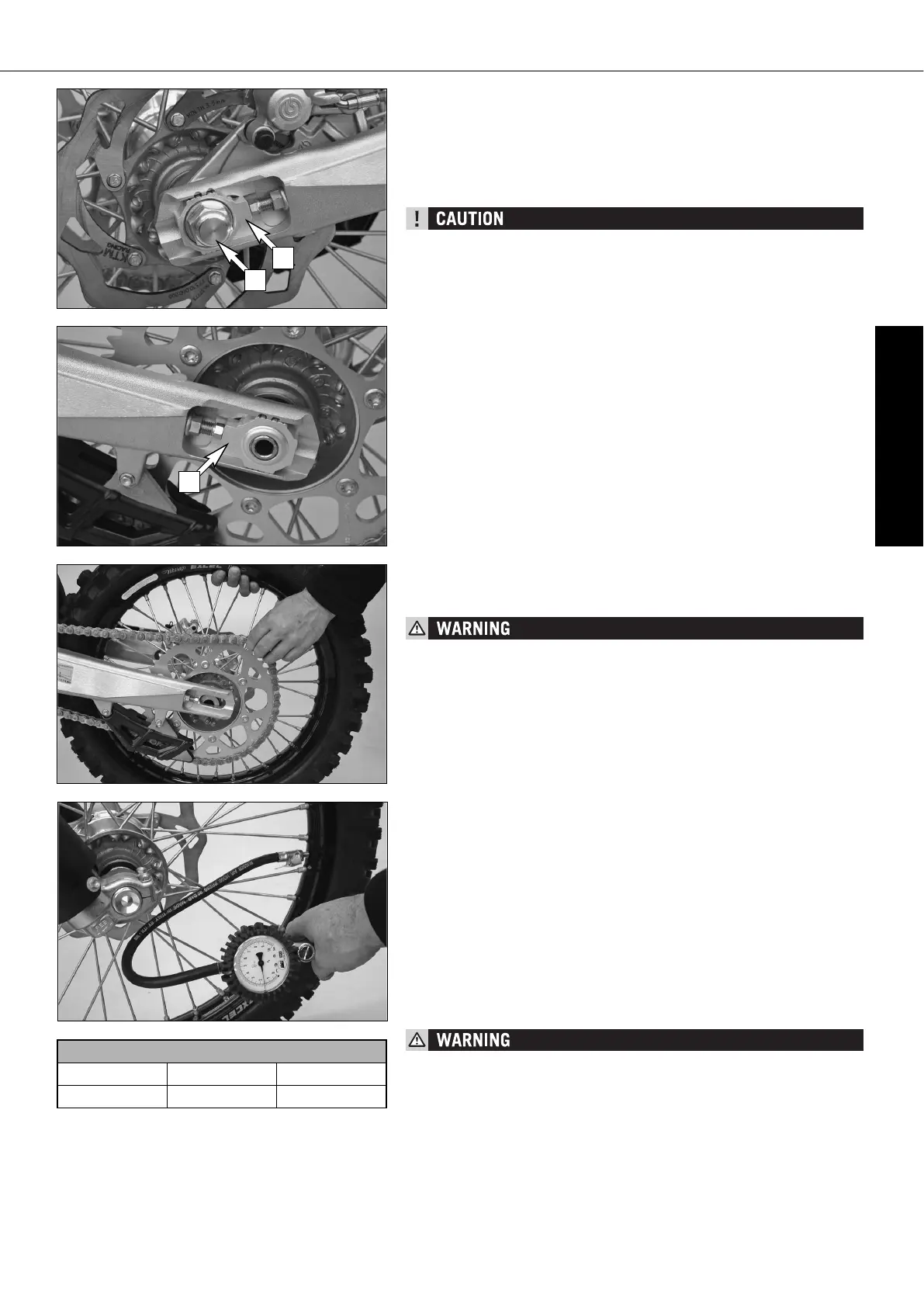 cycle. Before leaving, check tires for punctures and nails or other sharp