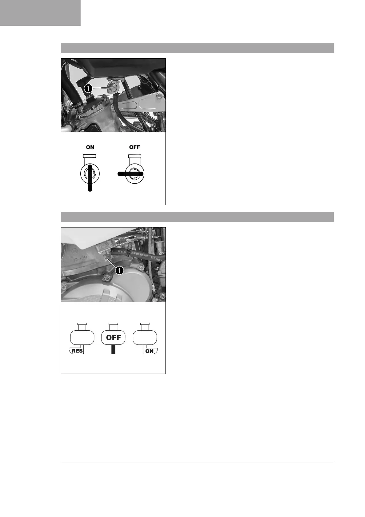 • Open fuel supply ON – Fuel can flow from the fuel tank to the