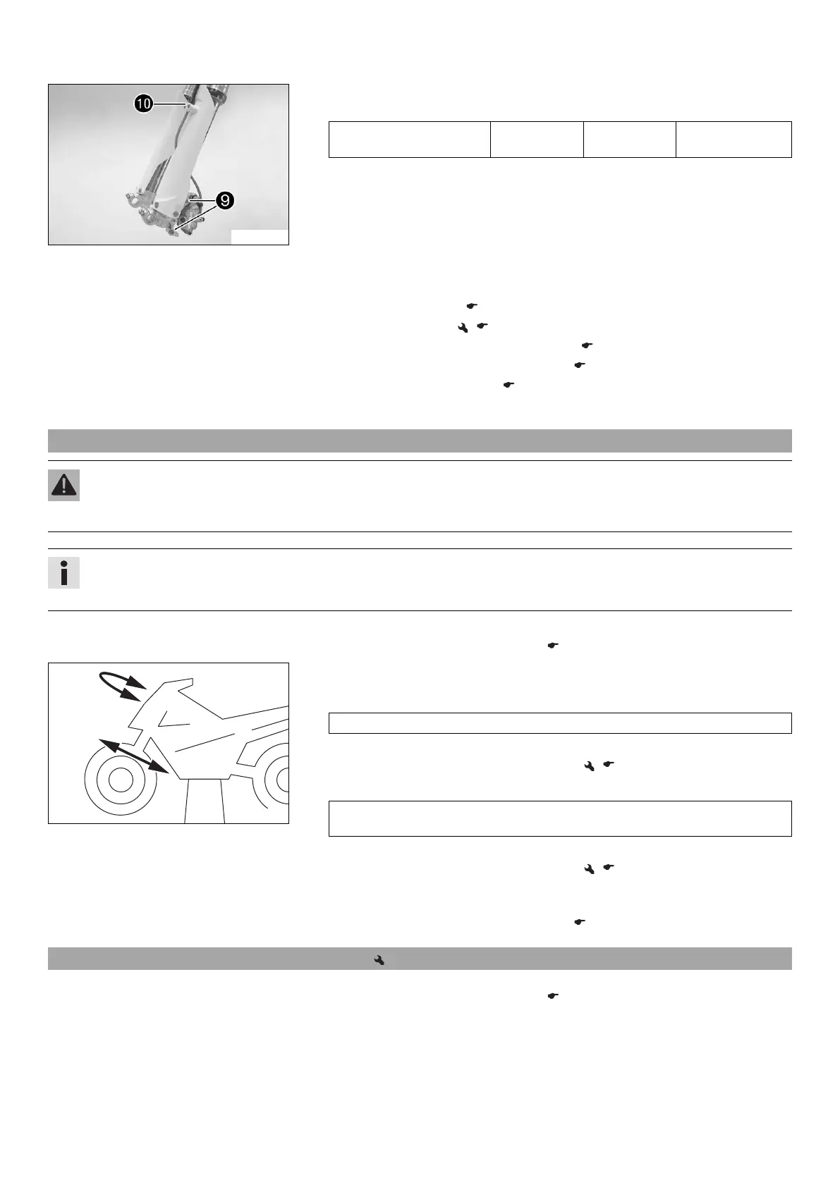 – Check the play of the steering head bearing. ( p. 50)
