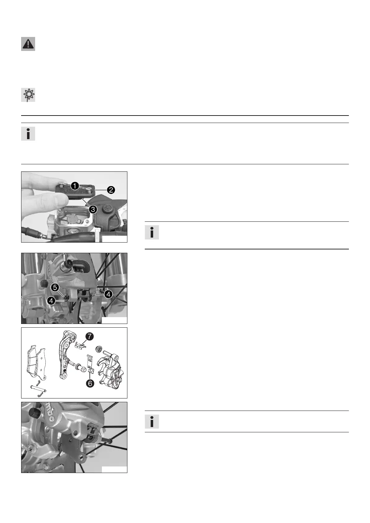 – Brake linings available from accessory suppliers are often not tested and approved for use on KTM vehicles. The construc-
