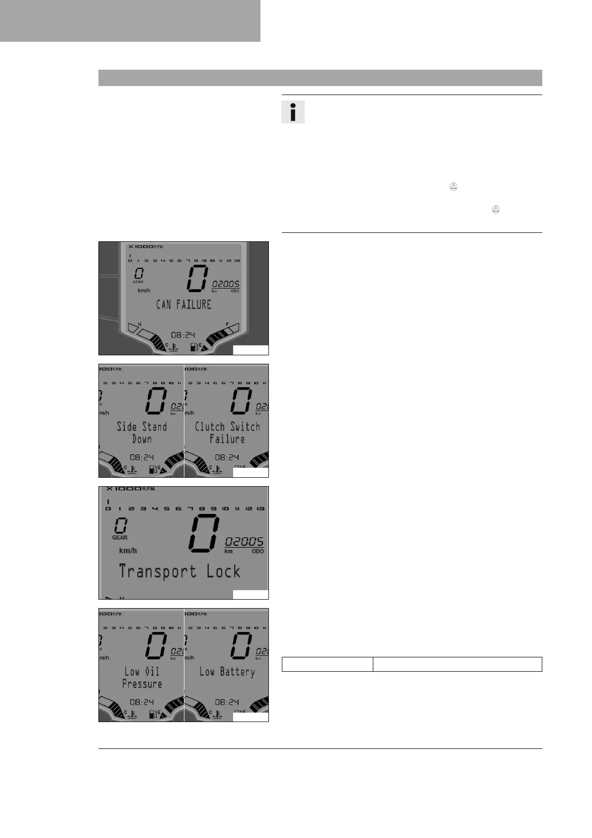 Side Stand Down appears on the display if the side stand is folded
