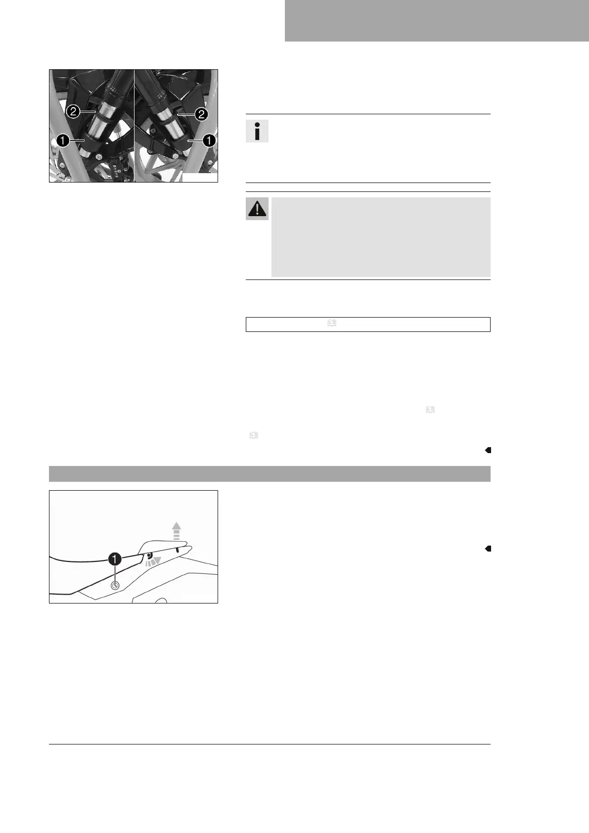 – Take the motorcycle off the front lifting gear. ( p. 50)