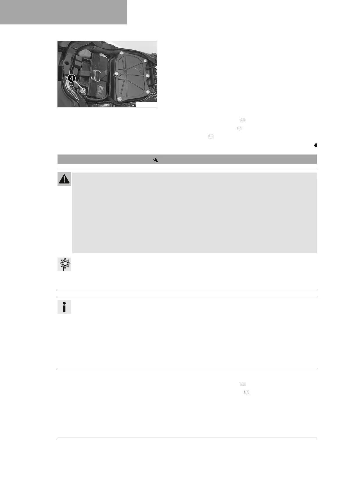 The 12-V battery is maintenance-free. The acid level does not have to be checked.