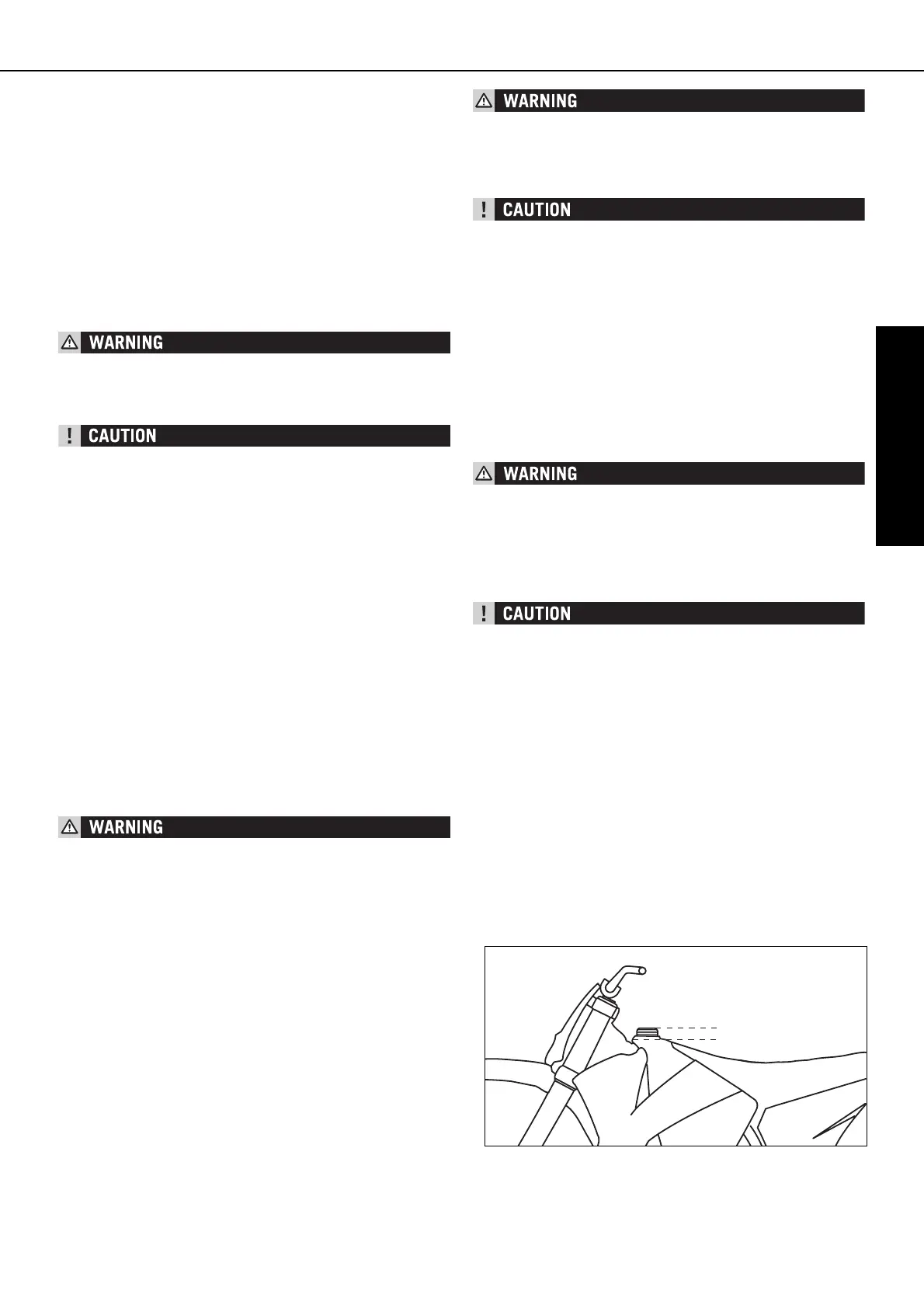 engine before refueling. Be careful not to spill gasoline on the engine